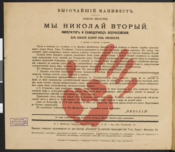 | Keywords: The Manifesto of October 17 1905 Pulemet no1 p12 1905.jpg ru Задняя сто она обложки жу нала Пулемёт 1 1905 год Изоб ажён текст анифеста 17 октяб я на кото ый нанесён к овавый отпечаток ладони Подпись под исунком гласилт «К сему листу свиты его величества гене ал-майо Т епов уку п иложил» 1905-11-13 http //digitallibrary usc edu/cdm/compoundobject/collection/p15799coll1/id/3324/rec/7 Авто исунка Г Шебуев авто текста - импе ато иколай II Custom license marker 2013 06 16 PD-RusEmpire Uploaded with UploadWizard Pulemet magazin Magazines of Russia 1905 |
