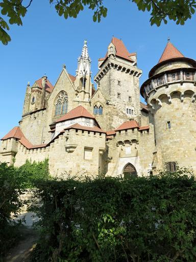 Keywords: the medieval castle day summer blue sky stone masonry tile roof austria green bushes architecture fortress building