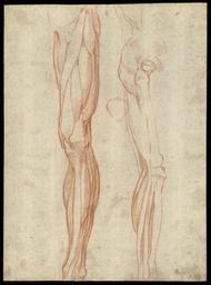 | Keywords: The muscles of the left leg, seen from the front, and the bones and muscles of the right leg seen in right profile, and between them, a patella. Drawing by Michelangelo Buonarroti, ca. 1515-1520. WDL3249.png Artwork ru Буона отти икеланджело 1475-1564 fr Buonarroti Michel-Ange 1475-1564 en Buonarroti Michelangelo 1475-1564 zh 博那罗蒂 米 基罗 1475-1564 pt Buonarroti Michelangelo 1475-1564 ar بوناروتي مايكلانجيلو 1475-1564 es Buonarroti Michelangelo 1475-1564 ru ускулы левой ноги вид спе еди и кости и мускулы п авой ноги вид сп ава а между ними - коленная чашечка Рисунок икеланджело Буона отти около 1515-1520 гг fr Les muscles de la jambe gauche vus de face et les os et muscles de la jambe droite vus de profil et entre eux une rotule Dessin de Michelangelo Buonarroti vers 1515-1520 en The muscles of the left leg seen from the front and the bones and muscles of the right leg seen in right profile and between them a patella Drawing by Michelangelo Buonarroti ca 1515-1520 zh 正 的左腿肌肉,右侧 的右腿骨骼和肌肉,及其中间的 个 盖骨 由米 基罗·博那罗蒂绘制,约 1515-1520 年 pt Os músculos da perna esquerda vistos de frente e os ossos e os músculos da perna direita vistos em perfil direito e entre eles a rótula Desenho por Michelangelo Buonarroti cerca de 1515-1520 ar عضلات الساق اليسرى، كما تبدو من الأمام، وعظام وعضلات الساق اليمنى كما تبدو من الجانب الأيمن، وفي وسطهما رضفة رسم مايكلانجيلو بوناروتي، حوالي 1515-1520 ru Эти исунки ноги человека были выполнены художником икеланджело Буана отти 1475-1564 гг кото ый занимался изучением анатомии человека согласно данным его самых анних биог афов Васа и 1550 г и Кондиви 1553 г Согласно имеющимся данным икеланджело впе вые п епа и овал т уп человека во Фло енции около 1495 года когда он получил заказ на создание аспятия для це кви Санто-Спи ито Це ковь Святого Духа астоятель этой це кви п едоставил ему помещение в кото ом он мог п епа и овать т уп для того чтобы он мог еалистично пе едать в скульпту е мускулы уми ающего на к есте Х иста Согласно имеющимся данным в последний аз икеланджело п епа и овал т уп в Риме в 1548 году Подобные изучения анатомии человека были источником полезной инфо мации для аботы икеланджело над своим типичным п едметом обнаженным мужским телом и мускулату ой в движении Рисунок слева - вид спе еди левого бед а и ноги; на нем тщательно п о исованы все основные мускулы в конту ном виде а затем зашт ихованы чтобы подче кнуть их фо му Ок углая и конусооб азная фо ма мускулов четко п о исована художником; он также тщательно отоб азил пе еплетение мышц между собой а исунке сп ава п едставлен вид сбоку тех же частей тела после того как мышечная ткань была удалена из пе едней части ноги Данные исунки были пода ены библиотеке Веллкома в 1980 году в память о докто е Робе те Хелле е и Анне Хелле <br>Рисунки мелом; Анатомия человека; Скелет человека; ога; ускулы fr Ces dessins de jambe humaine sont dûs à l'artiste Michelangelo Buonarroti 1475-1564 dont les études d'anatomie sont attestées par ses premiers biographes Vasari 1550 et Condivi 1553 On dit que Michel-Ange disséqua son premier cadavre à Florence vers 1495 après avoir été chargé de sculpter un crucifix en bois pour l'église de Santo Spirito Le prieur de l'église mit à sa disposition des locaux dans lesquels il put grâce à la dissection travailler à rendre de façon convaincante les muscles du Christ mourant La dernière dissection qu'on l'a vu pratiquer eut lieu à Rome en 1548 De telles études étaient particulièrement adaptées à son thème de prédilection le nu masculin et la distorsion de mouvement Le dessin de gauche est une vue frontale ou antérieure d'une cuisse et d'une jambe gauches sur laquelle les contours de chacun des muscles principaux sont dessinés puis hachurés en diagonale pour souligner leur forme La forme bombée et fuselée des muscles est clairement mise en valeur par le dessin tout comme leur entremêlement compact Le dessin de droite représente une vue latérale de la même structure après que les muscles aient été retirés de la partie avant du membre Cette œuvre a été offerte à la Bibliothèque Wellcome en 1980 en mémoire du Dr Robert Heller et de Mme Anne Heller <br>Dessins à la craie; Anatomie humaine; Squelette humain; Jambe; Muscles en These drawings of the human leg are by the artist Michelangelo Buonarroti 1475-1564 whose studies of anatomy are recorded by his earliest biographers Vasari 1550 and Condivi 1553 Michelangelo reportedly first dissected a cadaver in Florence around 1495 after he h