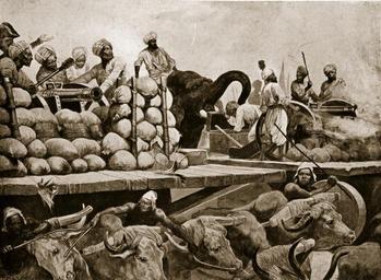 | Keywords: The Nawab's artillery at Plassey.jpg artwork en Battle of Plassey 23rd June 1757; Decisive British East India Company victory over the Nawab of Bengal and his French allies establishing Company rule in India; 1923 373554 creator Richard Caton Woodville Jr lithograph Private collection credit line The Stapleton Collection http //images2 bridgemanart com/cgi-bin/bridgemanImage cgi/2000 STC 3376730 7055475/373554 jpg 2000px file PD-old-auto-1923 1927 DEFAULTSORT Navab's artillery on a special movable platform Works by Richard Caton Woodville Jr ILN 1893 1893 in Hyderabad India Soldiers of India in art Hyderabad Contingent Elephant riding in art of India Cannons in Hyderabad India Cattle in art of India Carts in Andhra Pradesh Military history of Andhra Pradesh War elephants of India Uploaded with UploadWizard People with elephants in Andhra Pradesh |