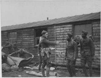 | Keywords: The Negroes had learned of orders to entrain for home had been received by another detachment and th . . . - NARA - 533557.tif Scope and content The full caption for this item is as follows The Negroes had learned of orders to entrain for home had been received by another detachment and they had thought they could mix in with the outgoing detachment and get aboard the homeward bound ship but the sergeant was too clever for them General notes 533557 Local identifier 165-WW-127 66 War Department 1789 - 09/18/1947 NARA-Author American Red Cross 02/12/1978 - Photographer 1107031 <br /> Still Picture Records Section Special Media Archives Services Division NWCS-S National Archives at College Park 8601 Adelphi Road College Park MD 20740-6001 1918 Record group Record Group 165 Records of the War Department General and Special Staffs 1860 - 1952 Record group ARC 494 American Unofficial Collection of World War I Photographs compiled 1917 - 1918 Series ARC 533461 File unit File unit ARC Variant control numbers NAIL Control Number NWDNS-165-WW-127 66 yes Other versions NARA-cooperation PD-USGov United States Army in World War I African American soldiers |