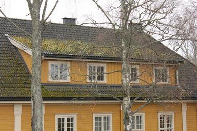 Keywords: The old yellow house at Eidsvoll Verk - 6.jpg en An old yellow house at Eidsvoll Verk Akershus Norway Detail from roof windows 2011-10-25 own Øyvind Holmstad cc-zero Uploaded with UploadWizard Eidsvoll village