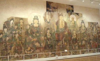 | Keywords: The Paradise of Maitreya, painted by Zhu Haogu and Zhang Boyuan, Xinghua Monastery, Shanxi Province, China, Yuan Dynasty, 1298, ink and color on clay - Royal Ontario Museum - DSC09829.JPG Exhibit in the Royal Ontario Museum Toronto Ontario Canada This exhibit is old enough so that it is in the public domain and photography was permitted in the museum I took this photograph and release it into the public domain Daderot 2011-11-20 18 23 54 Daderot cc0 cc0 Bishop White Gallery of Chinese Temple Art Paintings of the Yuan Dynasty Maitreya Zhu Haogu |