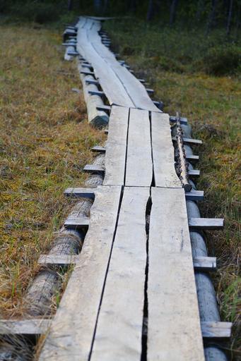 Keywords: the path support duckboards step swamp pond pine forest beach finnish nature log summer tree terrain ahead