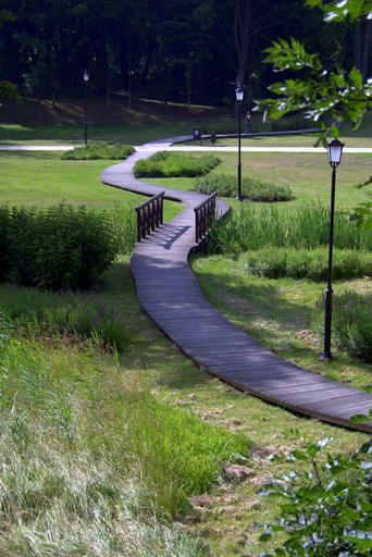 Keywords: the path way park wetlands syców poland bridge wooden lamp landscape tree forest spacer lane