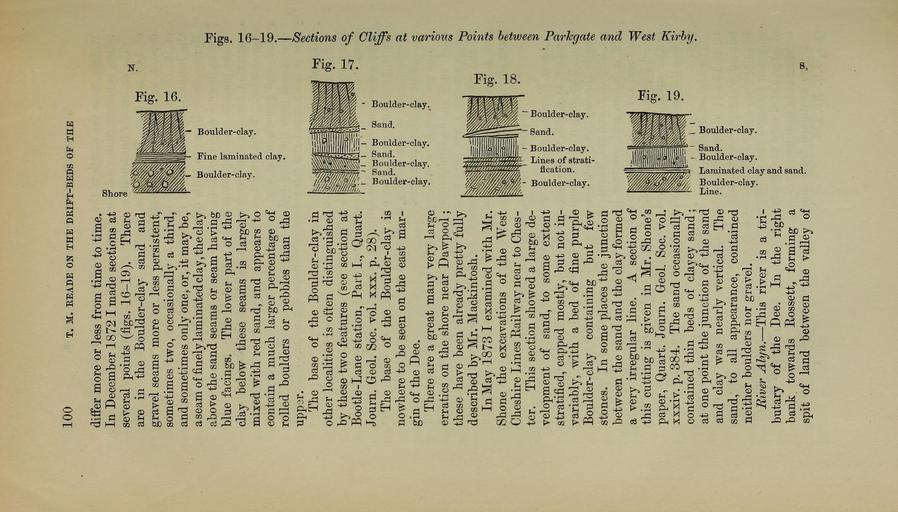 | Keywords: The Quarterly journal of the Geological Society of London (13204538905).jpg 100 <br> T M EEADE ON THE DEIET-BEDS OF THE <br> differ more or less from time to time <br> In December 1872 I made sections at <br> several points figs 16-19 There <br> are in the Boulder-clay sand and <br> gravel seams more or less persistent <br> sometimes two occasionally a third <br> and sometimes only one or it may be <br> a seam of finely laminated clay the clay <br> a bove the sand seams or seam having <br> blue facings The lower part of the <br> clay below these seams is largely <br> mixed with red sand and appears to <br> contain a much larger percentage of <br> rolled boulders or pebbles than the <br> uppar <br> The base of the Boulder-clay in <br> other localities is often distinguished <br> by these two features see section at <br> Bootle-Lane station Part L Quart <br> Journ Geol Soc vol xxx p 28 <br> The base of the Boulder-clay is <br> nowhere to be seen on the east mar- <br> gin of the Dee <br> There are a great many very large <br> erratics on the shore near Dawpool ; <br> these have been already pretty fully <br> described by Mr Mackintosh <br> In May 1873 I examined with Mr <br> Shone the excavations of the West <br> Cheshire Lines Railway near to Ches- <br> ter This section showed a large de- <br> velopment of sand to some extent <br> stratified capped mostly but not in- <br> variably with a bed of fine purple <br> Boulder- clay containing but few <br> stones In some places the junction <br> between the sand and the clay formed <br> a very irregular line A section of <br> this cutting is given in Mr Shone's <br> paper Quart Journ Geol Soc vol <br> xxxiv p 384 The sand occasionally <br> contained thin beds of clayey sand ; <br> at one point the junction of the sand <br> and clay was nearly vertical The <br> sand to all appearance contained <br> neither boulders nor gravel <br> River Alyn ” This river is a tri- <br> butary of the Dee In the right <br> bank towards Eossett forming a <br> spit of land between the valley of <br> ¢ ft <br> Hd <br> £ <br> § <br> i 36928681 113681 51125 Page 100 Text 39 http //www biodiversitylibrary org/page/36928681 1883 Geological Society of London Biodiversity Heritage Library The Quarterly journal of the Geological Society of London v 39 1883 Geology Periodicals Smithsonian Libraries bhl page 36928681 dc identifier http //biodiversitylibrary org/page/36928681 smithsonian libraries Information field Flickr posted date ISOdate 2014-03-16 Check categories 2015 August 26 CC-BY-2 0 BioDivLibrary https //flickr com/photos/61021753 N02/13204538905 2015-08-26 13 55 12 cc-by-2 0 PD-old-70-1923 The Quarterly journal of the Geological Society of London 1883 Photos uploaded from Flickr by Fæ using a script |