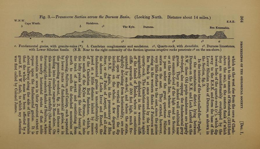 Keywords: The Quarterly journal of the Geological Society of London (12981007745).jpg 364 <br> PKOCEEDINGS OP THE GEOLOGICAL SOCIETY <br> Dec 1 <br> u <br> <br> tnOQ <br> CO <br> bJO <br> a <br> which on the west rise from the cove of Clash- <br> carnach to the summit of Skrishven 1213 feet <br> above the sea on the eastern flank of which <br> they are unconformably overlapped by the <br> lowest beds of the quartz-rock c which dip <br> away to the E S E and form the base of the <br> Lower Silurian rocks of Durness as shown in <br> the Section fig 3 <br> In the interior of the tract called the ' Parph <br> or the mountainous district lying between <br> Durness on the N E and Loch Laxford on the <br> S W these Old purple sandstones are largely <br> developed also capping the fundamental grey <br> gneiss They are indeed well exhibited near <br> the summit-level of the high road to Scourie <br> or at the Grwalin Inn whence they are seen <br> to pass under the great quartzose Silurian <br> series on the east They extend however <br> very little further to the east since the gneiss <br> rising in the western flanks of Foinaven and <br> Ben Stack is at once covered by the lower <br> quartz-rock The Cambrian sandstone is again <br> magnificently displayed in the western cliflfe <br> of the Island of Handa where it constitutes <br> cliffs upwards of 500 feet high much fre- <br> quented by sea-fowl and where the strata <br> slightly deviating from horizontahty are also <br> laid open by fine vertical fissures; the dip <br> inclining on the whole a few degrees to <br> the S E Again in the promontory of Rhu <br> Storr or the Point of Assynt and all along <br> the shores of Lochs Inver and Enard the <br> fundamental gneiss is unconformably super- <br> posed at a little distance inland by masses <br> of the Cambrian Red Sandstone which to <br> the south of the Kyles of Strome rise into <br> the lofty peaks forming the chief beauty of <br> the tract of Assynt and constituting from <br> north to south the detached mountains of <br> Queenaig Suilven and Canisp each separated <br> by lower tracts of fundamental gneiss as in <br> the preceding woodcut fig 2 and thence ex- <br> tending into similar ranges in Ross-shire On <br> this occasion I explored carefuUy the weather <br> favouring the eastern flanks of Suilven where <br> the nearly horizontal strata of that noble <br> mountain are seen in their greatest extent to <br> repose upon the fundamental gneiss It is <br> about halfway along the side of the mountain <br> that the whole mass has been afiected by a <br> great E and W fault to which my attention <br> was first called bv Colonel James 36161921 111474 51125 Page 364 Text v 15 http //www biodiversitylibrary org/page/36161921 1859 Geological Society of London Biodiversity Heritage Library The Quarterly journal of the Geological Society of London v 15 1859 Geology Periodicals Smithsonian Libraries bhl page 36161921 dc identifier http //biodiversitylibrary org/page/36161921 smithsonian libraries Information field Flickr posted date ISOdate 2014-03-07 Check categories 2015 August 26 CC-BY-2 0 BioDivLibrary https //flickr com/photos/61021753 N02/12981007745 2015-08-26 14 54 03 cc-by-2 0 PD-old-70-1923 The Quarterly journal of the Geological Society of London 1859 Photos uploaded from Flickr by Fæ using a script |