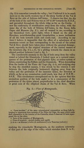 | Keywords: The Quarterly journal of the Geological Society of London (12981368984).jpg 120 PROCEEDESTGS OF THE GEOLOGICAL SOCIETY JuHG 23 <br> fig 3 is somewhat towards the valley ; but I believed it to be much <br> more so on the north-western top of the steep border of the Yal di <br> Bove on the side of Schiena dell'Asino I observe too that the dip <br> of the beds of the said Schiena was at 16° to 20° towards the N N E <br> and prevailed throughout the whole ridge as far as the Cirrita I <br> saw the conformity of stratification away from the valley with the <br> same dip of the beds of Schiena dell'Asino in the Eocca deUa <br> Capre and Musarra fig 2 ; and all seemed to me according to <br> my theoretical view quite right when I found on the side of <br> Zoccolaro notwithstanding great irregularities a mean inclination <br> of all the beds towards south and south-east According to my <br> view I believe it impossible that the effect of a subsidence of so <br> enormous extent as that corresponding to the circuit of the actual <br> Val di Bove should have taken place without the greatest derange- <br> ment especially in the original structure of the central masses of <br> the mountain fig 4 h c d by a gliding towards the chasm in an <br> altered position between h and a fig 1 <br> The considerable anomaly in the dip of beds away from the valley <br> round or behind the Giannicola I looked upon as a natural conse- <br> quence of the protrusion of that gigantic dyke or rather system of <br> dykes constituting the Solfizio and the Giannicola When descending <br> from the border of the Piano del Lago fig 4 a and studying step <br> by step the stratified masses I was struck by the relation I saw <br> between the beds originally horizontal dipping away from the <br> vaUey and the protrusion of the immense dykes the direction of <br> which as far as my examination could reach was that of N N W - <br> S S E This circumstance strengthened me in the opinion that this <br> anomalous position of the beds ought to be a consequence of the <br> protrusion of the dykes almost perpendicular to the chief direction <br> or great axis of the elliptical chasm of the Yal di Bove When <br> Fig 5 ” View of Montagnuola <br> a Lava tavolata of the same mineralogical composition as those beds be- <br> longing to uppermost lava-currents of the Piano del Lago the same which make <br> their appearance in the interior of the Cisterella where I observed 15 beds super- <br> posed one on the other <br> b Lava of the eruption of Montagnuola <br> c Cone of eruption ; ejected cinders and capilli <br> \a is to c as Somma cratere de soulevemenf is to Vesuvius volcan ' <br> studying the remarkable Montagnuola on the southern extremity <br> of that part of the edge of the valley which stretches from N to S 36161659 111474 51125 Page 120 Text v 15 http //www biodiversitylibrary org/page/36161659 1859 Geological Society of London NameFound Vesuvius volcan Biodiversity Heritage Library The Quarterly journal of the Geological Society of London v 15 1859 Geology Periodicals Smithsonian Libraries bhl page 36161659 dc identifier http //biodiversitylibrary org/page/36161659 smithsonian libraries Information field Flickr posted date ISOdate 2014-03-07 Check categories 2015 August 26 CC-BY-2 0 BioDivLibrary https //flickr com/photos/61021753 N02/12981368984 2015-08-26 14 56 21 cc-by-2 0 PD-old-70-1923 The Quarterly journal of the Geological Society of London 1859 Photos uploaded from Flickr by Fæ using a script |
