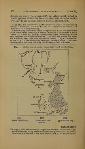 | Keywords: The Quarterly journal of the Geological Society of London (12961674864).jpg 408 <br> PEOCEEDIl GS OF THE GEOLOGICAL SOCIETY Juno 23 <br> deposits had scarcely been suggested the author thought it best to <br> remain ignorant of what had been said about this particular locality <br> previously to his making a series of personal observations f <br> Mr Hull has lately worked out this division in some of the more inland <br> districts of Lancashire See Mem Lit Phil Soc Manchester for 1863-64 and <br> Memoirs of the Geological Survey <br> t Since making observations on the Blackpool drifts I have seen perhaps the <br> finest section of the three drifts in vertical succession to be met with in south <br> Britain It is about 1 50 feet high and embraces Lower Boulder-clay middle <br> sand and gravel and Upper Boulder-clay The drifts are exposed in a river- <br> cliff at Kedscar about three miles north-east of Preston They will be described <br> in one of Mr Hull's forthcoming Geological Survey Memoirs The Lower <br> Boulder-clay is here much less stony than at Blackpool and in Furness <br> Pig 1 ” STcetch-map of parts of Lancashire and Cumberland <br> SlaelcpooJ <br> T haiTV <br> JBTorecanLbe / j <br> jEtQSsdM <br> S r 'ft <br> B 3 <br> Lower Boulder-clay <br> Middle Sand and <br> Gravel <br> Upper Boulder-clay <br> EXPLANATION <br> The Maps of north-west Lancashire and part of Cumberland are intended to give <br> are either driftless or they have not been examined by the author In Furness <br> believed to be equivalent to the more decided drift of the neighbourhood 36103283 111288 51125 Page 408 Text v 25 http //www biodiversitylibrary org/page/36103283 1869 Geological Society of London Biodiversity Heritage Library The Quarterly journal of the Geological Society of London v 25 1869 Geology Periodicals Smithsonian Libraries bhl page 36103283 dc identifier http //biodiversitylibrary org/page/36103283 smithsonian libraries Information field Flickr posted date ISOdate 2014-03-06 Check categories 2015 August 26 CC-BY-2 0 BioDivLibrary https //flickr com/photos/61021753 N02/12961674864 2015-08-26 14 56 41 cc-by-2 0 PD-old-70-1923 The Quarterly journal of the Geological Society of London 1869 Photos uploaded from Flickr by Fæ using a script |
