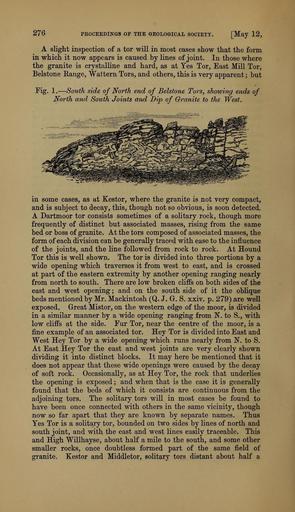 | Keywords: The Quarterly journal of the Geological Society of London (12961164485).jpg 276 PEOCEEDINGS OF THE GEOLOGICAL SOCIETY May 12 <br> A sKght inspection of a tor will in most cases show that the form <br> in which it now appears is caused by lines of joint In those where <br> the granite is crystalline and hard as at Yes Tor East Mill Tor <br> Belstone Range Wattern Tors and others this is very apparent ; but <br> Eig 1 ” South side of North end of Belstone Tors showing ends of <br> North and South Joints and Dip of Granite to the West <br> in some cases as at Kestor where the granite is not very compact <br> and is subject to decay this though not so obvious is soon detected <br> A Dartmoor tor consists sometimes of a solitary rock though more <br> frequently of distinct but associated masses rising from the same <br> bed or boss of granite At the tors composed of associated masses the <br> form of each division can be generally traced with ease to the influence <br> of the joints and the line followed from rock to rock At Hound <br> Tor this is well shown The tor is divided into three portions by a <br> wide opening which traverses it from west to east and is crossed <br> at part of the eastern extremity by another opening ranging nearly <br> from north to south There are low broken cliffs on both sides of the <br> east and west opening ; and on the south side of it the oblique <br> beds mentioned by Mr Mackintosh Q J G S xxiv p 279 are well <br> exposed Great Mistor on the western edge of the moor is divided <br> in a similar manner by a wide opening ranging from N to S with <br> low cliffs at the side Pur Tor near the centre of the moor is a <br> fine example of an associated tor Hey Tor is divided into East and <br> West Hey Tor by a wide opening which runs nearly from N to S <br> At East Hey Tor the east and west joints are very clearly shown <br> dividing it into distinct blocks It may here be mentioned that it <br> does not appear that these wide openings were caused by the decay <br> of soft rock Occasionally as at Hey Tor the rock that underlies <br> the opening is exposed ; and when that is the case it is generally <br> found that the beds of which it consists are continuous from the <br> adjoining tors The solitary tors will in most cases be found to <br> have been once connected with others in the same vicinity though <br> now so far apart that they are known by separate names Thus <br> Yes Tor is a solitary tor bounded on two sides by lines of north and <br> south joint and with the east and west lines easily traceable This <br> and Iligh Willhayse about half a mile to the south and some other <br> smaller rocks once doubtless formed part of the same field of <br> granite Kestor and Middletor solitary tors distant about half a 36103123 111288 51125 Page 276 Text v 25 http //www biodiversitylibrary org/page/36103123 1869 Geological Society of London Biodiversity Heritage Library The Quarterly journal of the Geological Society of London v 25 1869 Geology Periodicals Smithsonian Libraries bhl page 36103123 dc identifier http //biodiversitylibrary org/page/36103123 smithsonian libraries Information field Flickr posted date ISOdate 2014-03-06 Check categories 2015 August 26 CC-BY-2 0 BioDivLibrary https //flickr com/photos/61021753 N02/12961164485 2015-08-26 15 52 09 cc-by-2 0 PD-old-70-1923 The Quarterly journal of the Geological Society of London 1869 Photos uploaded from Flickr by Fæ using a script |