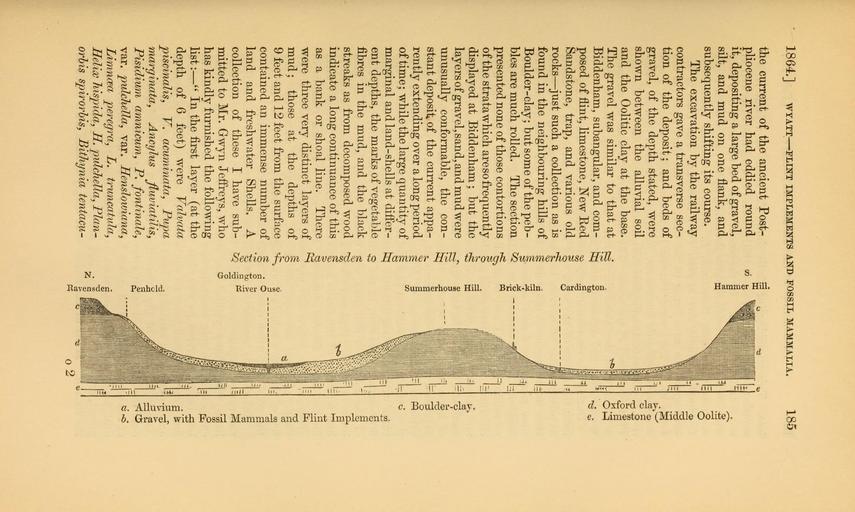 Keywords: The Quarterly journal of the Geological Society of London (12894882215).jpg 1864 <br> WYATT FLINT IMPLEMENTS AND FOSSIL MAMMALIA <br> 185 <br> the current of the ancient Post- <br> pliocene river had eddied round <br> it depositing a large bed of gravel <br> silt and mud on one flank and <br> subsequently shifting its course <br> The excavation by the railway <br> contractors gave a transverse sec- <br> tion of the deposit; and beds of <br> gravel of the depth stated were <br> shown between the alluvial soil <br> and the Oolitic clay at the base <br> The gravel was similar to that at p§ <br> Biddenham stibangular and com- jjs <br> posed of flint limestone New Red » <br> Sandstone trap and various old g <br> rocks ” just such a collection as is f; <br> found in the neighbouring hills of g <br> Boulder-clay; but some of the peb- 1 <br> bles are much rolled The section Q <br> presented none of those contortions <br> of the strata which are so frequently § <br> displayed at Biddenham ; but the hg <br> layers of gravel sand and mud were <br> unusually conformable the con- S <br> stant deposit of the current appa- <br> rently extending over a long period g <br> of time ; while the large quantity of i <br> marginal and land- shells at differ- fc <br> ent depths the marks of vegetable © <br> fibres in the mud and the black g <br> streaks as from decomposed wood – § <br> indicate a long continuance of this § <br> as a bank or shoal line There § <br> were three very distinct layers of <br> mud; those at the depths of <br> 9 feet and 12 feet from the surface <br> contained an immense number of § <br> land and freshwater Shells A '-§ <br> collection of these I have sub- § <br> mitted to Mr Gwyn Jeffreys who <br> has kindly furnished the following <br> list ” In the first layer at the <br> depth of 6 feet were Vdlvata <br> piscinalis V acuminata Pupa <br> marginata Ancylus Jluviatilis <br> Pisidiwn amnicum P fontinale <br> var pulchella var Henslovnana <br> Limncea peregra L truncatula <br> Helix hispida H pulchella Plan- <br> orbis spirorbis Bithynia tentacu- <br> pq <br> xafc--'- <br> S <br> fc s <br> 3 <br> ft <br> Br- <br> « 36089426 111261 51125 Page 185 Text v 20 http //www biodiversitylibrary org/page/36089426 1864 Geological Society of London NameFound Ancylus NameConfirmed Ancylus EOLID 10711852 NameBankID 2687651 NameFound Bithynia NameConfirmed Bithynia EOLID 62757 NameBankID 2683521 NameFound Mammalia NameConfirmed Mammalia EOLID 15503955 NameBankID 2478620 NameFound Pupa fontinale NameConfirmed Piper fontinale NameBankID 10744412 NameFound Pupa marginata NameConfirmed Pupa marginata Draparnaud 1801 Biodiversity Heritage Library The Quarterly journal of the Geological Society of London v 20 1864 Geology Periodicals Smithsonian Libraries bhl page 36089426 dc identifier http //biodiversitylibrary org/page/36089426 smithsonian libraries Information field Flickr posted date ISOdate 2014-03-03 Check categories 2015 August 26 CC-BY-2 0 BioDivLibrary https //flickr com/photos/61021753 N02/12894882215 2015-08-26 16 54 26 cc-by-2 0 PD-old-70-1923 The Quarterly journal of the Geological Society of London 1864 Photos uploaded from Flickr by Fæ using a script |