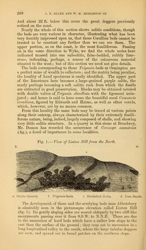 | Keywords: The Quarterly journal of the Geological Society of London (12735866815).jpg 268 <br> J F BLAKE AND W H H1TDLEST0N ON <br> And about 22 ft below this occur the great doggers previously <br> noticed on the coast <br> Nearly the whole of this section shows oolitic conditions though <br> the beds are very various in character illustrating what has been <br> very forcibly impressed upon us that these Corallian beds cannot be <br> trusted to be constant any further than we can see them The <br> upper portion as on the coast is the most fossiliferous Passing <br> on in the same direction to Wyke we find the whole series here <br> indicated massed into one suboolitic false-bedded rubbly lime- <br> stone indicating perhaps a source of the calcareous material <br> situated to the west ; but of this section we need not give details <br> The beds corresponding to these Trigonia-heds at Osmington are <br> a perfect mine of wealth to collectors ; and the matrix being peculiar <br> the locality of hand specimens is easily identified The upper part <br> of the limestones here becomes a large-grained purple oolite the <br> marly partings becoming a soft oolitic rock from which the fossils <br> are extracted in good preservation Blocks may be obtained covered <br> with double valves of Trigonia clavellata with the ligament unin- <br> jured ; and hence is said to have come the beautiful coral Comoseris <br> irradians figured by Edwards and Haime as well as other corals <br> which however are by no means common <br> From this locality the same beds may be traced at various points <br> along their outcrop always characterized by their extremely fossili- <br> ferous nature being indeed largely composed of shells and showing- <br> very little oolitic structure In a quarry in this stone at Broadwey <br> Mr Damon has recorded the occurrence of Ceromya eoccentrica <br> Ag a fossil of importance in some localities <br> View of Linton Hill from the North <br> a Oolite Quarry <br> b T 'igonia-heds c S'andsfbot Grits <br> d Iron Sands <br> The development of these and the overlying beds near Abbotsbury <br> is admirably seen in the picturesque elevation called Linton Hill <br> fig 1 Its gently sloping sides are scored obliquely by two cliff-like <br> escarpments passing over it from S S W to N N E These are due <br> to the succession of hard beds which have a rather less slope to the <br> east than the surface of the ground ; they crop out in succession in a <br> long longitudinal valley to the south where the largo tabular doggers <br> arc soon and spread out in broad patches on the northern slope 35818397 110705 51125 Page 268 Text 33 http //www biodiversitylibrary org/page/35818397 1877 Geological Society of London NameFound Ceromya NameConfirmed Ceromya EOLID 55410 NameBankID 4109287 NameFound Comoseris irradians NameConfirmed Comoseris irradians NameFound Trigonia clavellata NameConfirmed Trigonia clavellata Biodiversity Heritage Library The Quarterly journal of the Geological Society of London v 33 1877 Geology Periodicals Smithsonian Libraries bhl page 35818397 dc identifier http //biodiversitylibrary org/page/35818397 smithsonian libraries Information field Flickr posted date ISOdate 2014-02-24 Check categories 2015 August 26 CC-BY-2 0 BioDivLibrary https //flickr com/photos/61021753 N02/12735866815 2015-08-26 19 55 45 cc-by-2 0 PD-old-70-1923 The Quarterly journal of the Geological Society of London 1877 Photos uploaded from Flickr by Fæ using a script |