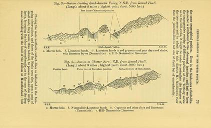 Keywords: The Quarterly journal of the Geological Society of London (12733760933).jpg 74 A B WYNNE ON SOME FEATURES IN THE <br> it should be remembered that the depth of this bay is twenty miles <br> on its shortest side lying within British territory on the right <br> bank of the Jhilam that this side is there nearly a straight line and <br> as strongly resembles a fault separating highly contorted rocks as any <br> other portion of the contact Examined in the same way other parts <br> of the junction lose much of their apparent sinuosity <br> 17 The sudden change in the direction of the ranges and strike of <br> the rocks in the Jhilam valley has been already mentioned ; and in this <br> connexion it is somewhat singular to mark that on the further side <br> of that river from our district in the tributary valley of the Poonch <br> Kashmere occurs the nearest instance of the unconformity con- <br> tended for by Mr Medlicott at a place called Dundelee The strike <br> of the rocks E 35° S belongs to the same system as that of the <br> Himalaya east of the Jhilam valley ; and the section as given in Mr <br> Medlicott's report is extracted fig 5 for comparison with those <br> Fig 5 ” Section at Dundelee Poonch Valley <br> From 'Mem Greol Surv India ' vol iii pi 2 p 96 <br> c\ Krql group c 2 Infra-Krol d Subathu group <br> within our district figs 2 3 and 4 and lying about 45 miles to the <br> west-north-west <br> The hard blue limestone c 1 in this section taken by Mr Med- <br> licott to represent his Krol subdivision if it is the same as that of <br> Mochipoora Mountain as may be gathered from a footnote at p 92 <br> of the Report is most probably Nummulitic or might also include <br> some of the Triassic limestones of that range ; at any rate it would <br> appear to belong to the Hill-limestone rocks c 2 is said to be com- <br> posed of thin carbonaceous slaty shales which if they are the same <br> as those of Shah-durrah mentioned in the succeeding passage pro- <br> bably belong to the zone marked d in the section fig 5 ; indeed <br> this might be inferred from the parallelism to the latter which <br> Mr Medlicott mentions d 2 red sandstone and clays and d 3 num- <br> mulitic clays and limestones are evidently the same as those of <br> the Murree beds previously described under letter E If the slaty <br> shales c 2 pass conformably below the limestone c 1 they probably <br> represent some of the many hard splintery shaly beds of the Mochi- <br> poora nummulitic rocks <br> Of course without having seen the Dundelee section these remarks <br> upon it are given with reserve ; still it is much nearer to our district <br> than to the Simla area and this must be the excuse for an attempt <br> to interpret it according to Upper-Punjab experience 35765927 110599 51125 Page 73 Text v 30 http //www biodiversitylibrary org/page/35765927 1874 Geological Society of London Biodiversity Heritage Library The Quarterly journal of the Geological Society of London v 30 1874 Geology Periodicals Smithsonian Libraries bhl page 35765927 dc identifier http //biodiversitylibrary org/page/35765927 smithsonian libraries Information field Flickr posted date ISOdate 2014-02-24 Check categories 2015 August 26 CC-BY-2 0 BioDivLibrary https //flickr com/photos/61021753 N02/12733760933 2015-08-26 19 50 25 cc-by-2 0 PD-old-70-1923 The Quarterly journal of the Geological Society of London 1874 Photos uploaded from Flickr by Fæ using a script