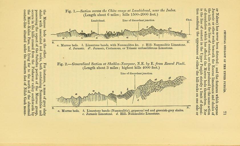 Keywords: The Quarterly journal of the Geological Society of London (12733582925).jpg 72 A B WYNNE ON SOME EEATUEES IN THE <br> tain on the Indus below Attock Red and variegated gypseous <br> rocks resembling those in the Murree group previously mentioned <br> occur far down in the ravine of the Haro river near its source and at <br> Doongagully on the new mountain-road from Murree to Abbottabad <br> while the possibility of the extension of the hill type of Nummu- <br> litic limestone southwards beneath the Pot'war country is supported <br> by its reappearance at the hill of Khairee Moorut ten miles south <br> of the junction-line referred to and west by south from Eawul <br> Pindi <br> Although the line of junction presents ordinarily the appearance <br> of a single line of contact often concealed owing to its position at <br> the foot of hills this is not a constant condition ; for it is accompa- <br> nied in places by somewhat parallel lines of the same kind situated <br> within very short distances and traceable into close convergence if <br> not into absolute unity with the main one see section fig 3 It <br> also throws off a branch north of Eawul Pindi having all the <br> characters by which it is itself distinguished and bringing the same <br> sort of Lower Murree rocks into junction with the Hill-limestones <br> This branch diverging at an acute angle from the north side of the <br> line passes westward along the outer foot of the ridge behind <br> which are the ruins of the ancient Taxila at Shah-ka-deri <br> The whole aspect of the contact along this line presents none of <br> the features or irregular outlines which might be expected to result <br> from unconformity overlap or limit of deposition ; and further <br> it might be urged that nowhere along the junction are the newer <br> rocks on one side of the line or its branches made up of any recog- <br> nizable detritus of the older beds on the other side ; nor indeed <br> are any prominent coarse detrital deposits such as might indicate <br> an adjacent shore to be found in the lower strata of the Murree <br> group a few minor beds of coarse sandstone at one part of the <br> junction only in section fig 3 b l having been met with along the <br> whole region of contact from Oori to Kohat a distance of fully 200 <br> miles Nor does it appear that the basal beds of the known Tertiary <br> deposits in the Simla area along their inner and even more ex- <br> tended boundary differ in these respects from the junction beds of <br> the Tertiary belt with the Hill-rocks in this region <br> The contact here on the contrary presents straight or but slightly <br> curved lines like those of fractured dislocation without sinuosities <br> resembling deep bays creeks or promontories ; nor are there visible <br> signs of islands lying off the supposed ancient coast the detached <br> elongated hill of Khairee Moorut being apparently enclosed between <br> lines of fault <br> In a case of ordinary unconformity or overlap subjected to denu- <br> dation discordant patches of the Murree beds might be expected to <br> occur resting on the older rocks ; but these have not been met with <br> any detached portions which have been found being apparently let in <br> among the older rocks by faults rather than folded into contortions <br> 16 Under all these circumstances it is difficult to recognize in <br> this and the Simla region the same relations among formations or <br> groups several of which may be fairly considered identical and in 35765925 110599 51125 Page 71 Text v 30 http //www biodiversitylibrary org/page/35765925 1874 Geological Society of London Biodiversity Heritage Library The Quarterly journal of the Geological Society of London v 30 1874 Geology Periodicals Smithsonian Libraries bhl page 35765925 dc identifier http //biodiversitylibrary org/page/35765925 smithsonian libraries Information field Flickr posted date ISOdate 2014-02-24 Check categories 2015 August 26 CC-BY-2 0 BioDivLibrary https //flickr com/photos/61021753 N02/12733582925 2015-08-26 20 01 37 cc-by-2 0 PD-old-70-1923 The Quarterly journal of the Geological Society of London 1874 Photos uploaded from Flickr by Fæ using a script |
