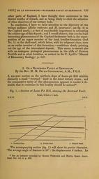 | Keywords: The Quarterly journal of the Geological Society of London (12684314643).jpg 1852 DE LA CONDAMINE REVERSED FAULT AT LEWISHAM 193 <br> other parts of England I have thought their occurrence in this <br> district worthy of remark and as heing likely to elicit the attention <br> of other observers of our tertiary beds <br> In conclusion I have to draw attention to the discovery of two <br> extinct molluscs Helix ruderata and H incarnata see fig 4 in <br> the Copford marls ” a fact of considerable importance in estimating <br> the relative age of this deposit ; and I would observe that not the least <br> interesting phsenomenon of the Copford freshwater beds is the super- <br> position of an upper member of the local boulder-formation bed <br> No 1 on the shell-marl which latter with its subjacent clays rests <br> on an earlier member of this formation ” conditions clearly pointing <br> out the age of the intercalated deposit This seems to accord also <br> with an analogous geological phsenomenon in the cliffs of Eastern <br> Norfolk and in other localities as noticed in Sir C Lyell's Manual <br> of Elementary Geology ' p 127 <br> 2 On a Reversed Fault at Lewisham <br> By the Rev H M De la Condamine A M F G S <br> A RECENT section on the northern slope of Loam-pit Hill exhibits <br> distinctly a small reversed fault in the lower tertiary strata; and <br> the comparative rarity of this phsenomenon appears to render it de- <br> sirable that its existence in this locality should be noticed <br> Fig 1 ” Section at Loam Pit Hill showing the Reversed Fault <br> Scale 6 feet l inch <br> N N w <br> S S E <br> 1 London Clay 2 Pebble Bed 3 Striped Sand <br> The accompanying section fig 1 will show its precise character <br> The average angle of fracture is 30° the displacement 6 inches Its <br> See an instance recorded by Messrs Prestwich and Morris Quart Journ <br> Geol Soc vol ii p 402 35461199 109911 51125 Page 193 Text v 8 http //www biodiversitylibrary org/page/35461199 1852 Geological Society of London NameFound H incarnata Biodiversity Heritage Library The Quarterly journal of the Geological Society of London v 8 1852 Geology Periodicals Smithsonian Libraries bhl page 35461199 dc identifier http //biodiversitylibrary org/page/35461199 smithsonian libraries Information field Flickr posted date ISOdate 2014-02-21 Check categories 2015 August 26 CC-BY-2 0 BioDivLibrary https //flickr com/photos/61021753 N02/12684314643 2015-08-27 12 55 47 cc-by-2 0 PD-old-70-1923 The Quarterly journal of the Geological Society of London 1852 Photos uploaded from Flickr by Fæ using a script |