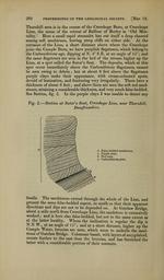 | Keywords: The Quarterly journal of the Geological Society of London (12683672974).jpg 260 <br> PROCEEDINGS OF THE GEOLOGICAL SOCIETY Mar 19 <br> Thornhill area is in the course of the Creechope Burn at Creechope <br> Linn the scene of the retreat of Balfour of Burley in Old Mor- <br> tality ' Here a small rapid streamlet has cut itself a deep channel <br> among soft sandstones leaving steep cliffs on either side At the <br> entrance of the Linn a short distance above where the Creechope <br> joins the Cample Burn we have purplish flagstones which belong to <br> the Carboniferous age dipping atN 4° S E at an angle of 15°; and <br> the same flagstones are seen in the bed of the stream higher up the <br> Linn at a spot called the Sutor's Seat The deposits which at this <br> spot occur immediately above the Carboniferous flagstones cannot <br> be seen owing to debris ; but at about 9 feet above the flagstones <br> purple clays make their appearance with cream-coloured spots <br> devoid of lamination and fracturing very irregularly These have a <br> thickness of about 6 feet ; and above them are seen the soft red sand- <br> stones attaining a considerable thickness and very much false-bedded <br> See Section fig 2 In the purple clays I was unable to detect any <br> Fig 2 ” Section at Sutor's Seat Creechope Linn near Thornhill <br> Dumfriesshi re <br> d False-bedded sandstones <br> c Purple clays <br> b Not seen <br> a Carboniferous grits <br> fossils The sandstones extend through the whole of the Linn and <br> present the same false-bedded aspect so much so that their apparent <br> directions and dips are not to be depended on At Gatelaw Bridge <br> about a mile north from Creechope Linn the sandstone is extensively <br> worked ; and is here also false-bedded but not to the same extent as <br> at the latter locality Where the inclination is regular the dip is <br> N N W at an angle of 15° ; and at a short distance higher up the <br> Cample Water breccias are seen which seem to underlie the sand- <br> stone of Gatelaw Bridge Columnar basalt with layers of amygdaloid <br> occurs further to the east than the breccias and has furnished the <br> latter with a considerable portion of their contents 35338713 109655 51125 Page 260 Text v 12 http //www biodiversitylibrary org/page/35338713 1856 Geological Society of London Biodiversity Heritage Library The Quarterly journal of the Geological Society of London v 12 1856 Geology Periodicals Smithsonian Libraries bhl page 35338713 dc identifier http //biodiversitylibrary org/page/35338713 smithsonian libraries Information field Flickr posted date ISOdate 2014-02-21 Check categories 2015 August 26 CC-BY-2 0 BioDivLibrary https //flickr com/photos/61021753 N02/12683672974 2015-08-27 12 01 05 cc-by-2 0 PD-old-70-1923 The Quarterly journal of the Geological Society of London 1856 Photos uploaded from Flickr by Fæ using a script |