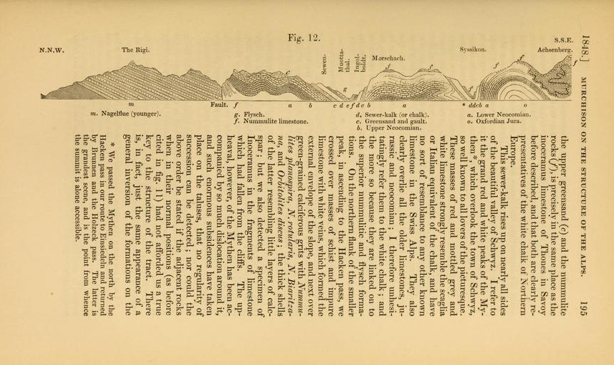 | Keywords: The Quarterly journal of the Geological Society of London (12645138115).jpg 1S48 <br> MTIRCHISON ON THE STRUCTURE OF THE ALPS <br> 195 <br> S' <br> s; <br> ¢ Ploq <br> ¢U3M3S <br> S '»' <br> M <br> the upper greensand c and the nummuhte <br> rocks / is precisely in the same place as the <br> inoceramus limestone of Thones in Savoy <br> before described and that both are clearly re- <br> presentatives of the white chalk of iNorthern <br> 5 Europe <br> g This sewer-kalk rises up on nearly all sides <br> H of the beautiful valley of Schwyz I refer to <br> it the grand red and white peaks of the My- <br> then which overlook the town of Schwyz <br> so well known to all lovers of the picturesque <br> These masses of red and mottled grey and <br> white limestone strongly resemble the scaglia <br> or Italian equivalent of the chalk and have <br> no sort of resemblance to any other known <br> S; limestone in the Swiss Alps They also <br> I § clearly overlie all the older limestones ju- <br> g rassic and neocomian ; I therefore unhesi- <br> S S3 tatinglv refer them to the white chalk ; and <br> –ºÂ§ ¢ the more so because they are linked on to <br> the superior nummulitic and flysch forma- <br> tions On the northern flank of the smaller <br> peak in ascending to the Hacken pass we <br> crossed over masses of schist and impure <br> limestone with white veins which formed the <br> external envelope of the slope and next over <br> g green-grained calciferous grits with Nummu- <br> S lites planospira N rotularis N Biaritza- <br> i na and Orbitolites discus ; the thick shells <br> S of the latter resembling little layers of calc- <br> I spar ; but we also detected a specimen of <br> Inoceramus in the fragments of limestone <br> which had fallen from the cliifs The up- <br> heaval however of the Mythen has been ac- <br> companied by so much dislocation around it <br> and such enormous subsidences have taken <br> place on the taluses that no regularity of <br> succession can be detected ; nor could the <br> above order be stated if the adjacent rocks <br> when in their normal positions as before <br> cited in fig 11 had not afforded us a true <br> key to the structure of the tract There <br> is in fact just the same appearance of a <br> general inversion of the formations on the <br> We passed the Mythen on the north by the <br> Hacken pass in our route to Einsiedeln and retm-ned <br> by Brunnen and the Holzeck pass The latter is <br> the grandest scene and is the point from whence <br> the summit is alone accessible 35268839 109512 51125 Page 195 Text v 5 http //www biodiversitylibrary org/page/35268839 1849 Geological Society of London NameFound Inoceramus NameConfirmed Inoceramus EOLID 4747366 NameBankID 4205663 NameFound Nummulina rotularis NameConfirmed Nummulina EOLID 27483402 NameBankID 4261488 NameFound Orbitolites discus Biodiversity Heritage Library The Quarterly journal of the Geological Society of London v 5 1849 Geology Periodicals Smithsonian Libraries bhl page 35268839 dc identifier http //biodiversitylibrary org/page/35268839 smithsonian libraries Information field Flickr posted date ISOdate 2014-02-20 Check categories 2015 August 26 CC-BY-2 0 BioDivLibrary https //flickr com/photos/61021753 N02/12645138115 2015-08-27 10 52 10 cc-by-2 0 PD-old-70-1923 The Quarterly journal of the Geological Society of London 1849 Photos uploaded from Flickr by Fæ using a script |