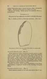 | Keywords: The Quarterly journal of the Geological Society of London (13889757548).jpg 62 <br> PEOF E W CLAYPOLE ON PIERASPIDIAlSr EISH IN <br> without intervening spaces ; furrows between ridges consequently <br> angular Diameter at base about one eighth of an inch <br> Horizon and locality Clinton group Iron-sandstone Perry co ; <br> Pennsylvania <br> Pal aspis g n <br> The genus has been sufficiently described in the body of the paper <br> Pig 7 ” Outline of Shield o/Palseaspis americana isTat size <br> The striation is shown only over a part of the shield but extends really <br> over all <br> Pal aspis ameeicana sp n Fig 7 <br> Shield elliptical in outline truncate at one end convex on upper <br> surface between two and three inches long ; lateral edges rolling in <br> under the upper surface ; thickness not exceeding inch over its <br> whole extent Upper surface covered with a tracery consisting of <br> fine delicate flowing depressed lines branching and anastomosing <br> but in general keeping directions rudely parallel often abruptly <br> curving near the end from both sides towards the medial line where <br> they terminate without ending in a spine <br> Locality and horizon Perry county Pennsylvania in the Bloom- <br> field Sandstone or uppermost member of the Onondaga Yariegated <br> Shales <br> Pal aspis biteiincata sp n Fig 8 <br> Shield elliptical truncate at hoth ends more convex than P ame- 37046900 114009 51125 Page 62 Text 41 http //www biodiversitylibrary org/page/37046900 1885 Geological Society of London NameFound Shales Biodiversity Heritage Library The Quarterly journal of the Geological Society of London v 41 1885 Geology Periodicals Smithsonian Libraries bhl page 37046900 dc identifier http //biodiversitylibrary org/page/37046900 smithsonian libraries Information field Flickr posted date ISOdate 2014-04-30 Check categories 2015 August 26 CC-BY-2 0 BioDivLibrary https //flickr com/photos/61021753 N02/13889757548 2015-08-26 04 55 36 cc-by-2 0 PD-old-70-1923 The Quarterly journal of the Geological Society of London 1885 Photos uploaded from Flickr by Fæ using a script |
