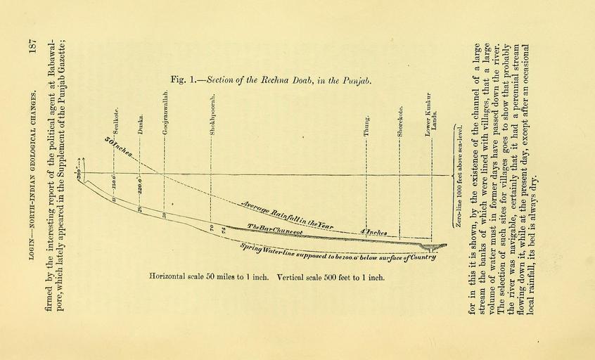 | Keywords: The Quarterly journal of the Geological Society of London (12513234294).jpg LOGHT NOKTH-INDIAN GEOLOGICAL CHAISTGES <br> ISI <br> firmed by the interesting report of the political agent at Babawal- <br> pore which lately appeared in the Supplement of the Punjab Gazette; <br> Sealkote <br> w <br> Duska <br> Goojranwallah <br> Shokhpoorah <br> S' <br> b <br> o <br> <br> s <br> Thung <br> Shorekote- <br> Lower Kunkur <br> Lands <br> Zero-line 1000 feet above sea-level <br> for m this it is shown by the existence of the channel of a large <br> stream the banks of which were lined with viUages that a large <br> volume of water must in former days have passed down the river <br> Ihe selection of such sites for viUages goes to show that probably <br> the nver was navigable certainly that it had a perennial stream <br> flowing down it while at the present day except after an occasional <br> local rainfall its bed is always dry 34985190 108770 51125 Page 187 Text v 28 http //www biodiversitylibrary org/page/34985190 1872 Geological Society of London Biodiversity Heritage Library The Quarterly journal of the Geological Society of London v 28 1872 Geology Periodicals Smithsonian Libraries bhl page 34985190 dc identifier http //biodiversitylibrary org/page/34985190 smithsonian libraries Information field Flickr posted date ISOdate 2014-02-14 Check categories 2015 August 26 CC-BY-2 0 BioDivLibrary https //flickr com/photos/61021753 N02/12513234294 2015-08-27 09 54 00 cc-by-2 0 PD-old-70-1923 The Quarterly journal of the Geological Society of London 1872 Photos uploaded from Flickr by Fæ using a script |