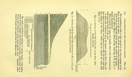 | Keywords: The Quarterly journal of the Geological Society of London (12511956503).jpg 124 PROCEEDINGS OF THE GEOLOGICAL SOCIETY Mar 23 <br> The fossiliferous sliale is well exposed in tlie deep cuttings of the <br> River Amiua at this place The fossils are altogether disseminated <br> Fish teeth are frequently found upon the surface of the shale <br> Cercado River Mao Beds of blue shale dip N W by N 5° <br> Fossils disseminated <br> This is merely the name of a locality where a few farm-houses are <br> built upon the banks of the river <br> A short mile southward from the houses up the River Mao the <br> blue shale is exceedingly well displayed in a cliff 200 feet high from <br> the surface of the water which may be termed the main cliff <br> Figs 5 6 <br> Fig 5 Section of the Cliff at Cercado on the River Mao <br> Height 200 feet <br> The summit at A is about 900 feet above the sea-level <br> A <br> ' ' ~- ~ _ ~ -- 5 <br> - n-- - 4 <br> _i ;_-- V 3 <br> / _ - ~ ' ' 1 r ' rbf I Level of the <br> I River Mao <br> 1 alus <br> Fig 6 Section of the Cercado Cliff transvase to Fig 5 at A and <br> of the rising ground inland <br> 5  <br> b5 <br> y Bluish sandy shales fossiliferous <br> 1 10 feet exposed <br> 2 20 feet <br> 3 50 feet <br> 4 90 feet Do without fossils <br> 5 50 feet ArfiUlo-calcareous shale with fossils <br> 6 from 10 to 20 feet Coarse shingle <br> 7 300 feet Tufaceous limestone <br> Dip 5° N W by N <br> The shale is divided by partings or narrow bands a few inches <br> thick; of more compact and hardened materials which stand out in <br> strong relief along its nearly perpendicular front Separate collec- <br> tions of fossils were made from the different beds 34983227 108767 51125 Page 124 Text v 9 http //www biodiversitylibrary org/page/34983227 1853 Geological Society of London Biodiversity Heritage Library The Quarterly journal of the Geological Society of London v 9 1853 Geology Periodicals Smithsonian Libraries bhl page 34983227 dc identifier http //biodiversitylibrary org/page/34983227 smithsonian libraries Information field Flickr posted date ISOdate 2014-02-14 Check categories 2015 August 26 CC-BY-2 0 BioDivLibrary https //flickr com/photos/61021753 N02/12511956503 2015-08-27 09 53 45 cc-by-2 0 PD-old-70-1923 The Quarterly journal of the Geological Society of London 1853 Photos uploaded from Flickr by FÌ using a script |