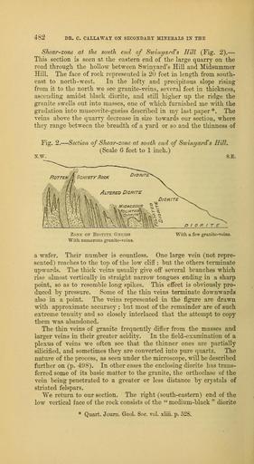 | Keywords: The Quarterly journal of the Geological Society of London (13937312691).jpg 484 DK C CALLAWAY ON SECONDAKY MINEEALS IN THE <br> must be regarded as the effect of secondary action This hornblende <br> compared with that of the preceding slides is darker brighter <br> clearer and more strongly pleochroic Chlorite sometimes appears <br> in the cleavage-planes of the hornblende and increases in quantity <br> at some points so as to form nests of rosettes irregular blotches or <br> patches running with the foliation Under crossed nicols it gives a <br> deep indigo -colour passing into grey In one of the slides there is <br> a fair quantity of epidote <br> Much of the felspar is clear and sound and a large proportion of <br> it shows the twinning of plagioclase ; but some of it has begun to <br> break up into an indistinct mosaic and displays numerous microlitbs <br> of a clear mineral white mica It is important to note that <br> this felspar is moulded upon all the preceding minerals and even <br> includes shreds of the chlorite and minute fragments of broken <br> hornblende- crystals The chlorite is certainly derived from the <br> hornblende and the distortion and fracture of the hornblende is a <br> secondary result produced by pressure subsequent to consolidation <br> since as I have stated it is frequently connected with the formation <br> of planes of discontinuity That this felspar is secondary receives <br> some confirmation from its clear and fresh appearance <br> The slides contain a small proportion of granular quartz some of <br> which contains liquid-cavities with air-bubbles <br> No 314 is taken from within a few inches of the veined plexus <br> Much of the hornblende is dragged out in the direction of foliation <br> and the whole of it is more or less dirty and opaque The opacity is <br> apparently due to liberated ferric oxide Most of the felspar is <br> either cloudy or contains countless clear microliths white mica <br> and in some there are patches of white mica There is also a great <br> quantity of finely granular almost opaque matter in the felspar <br> It may be epidote or zoisite Granules of quartz are scattered through <br> the slide <br> No 391 About the same distance from the zone but a little <br> higher up The hornblende is like the last but the curvilinear <br> outlines may be sometimes made out The felspar is also similar <br> The proportion of granular quartz is greater The noteworthy <br> feature of the slide is the coming-in of black mica It occurs in <br> elongated flakes several laminae in thickness and pointed at each end <br> They run parallel to the general foliation often passing through the <br> middle of hornblende-crystals and are occasionally associated with <br> a little chlorite The habit of these flakes is precisely that of the <br> chlorite which forms in the interior of the hornblende and frequently <br> projects beyond it The felspar is clearly moulded upon the mica <br> and sometimes completely encloses it <br> No 316 is in contact with the shear-zone The rock is rather <br> more compressed than in the last two slides The hornblende is <br> similar It sometimes passes into chlorite which becomes banded <br> here and there with black mica or is entirely replaced by it <br> Sometimes a little opaque flake probably ferruginized hornblende <br> projects from a bit of hornblende into a patch of chlorite and just <br> round the margin of the flake black mica is formed showing marked 36940311 113696 51125 Page 482 Text 45 http //www biodiversitylibrary org/page/36940311 1889 Geological Society of London Biodiversity Heritage Library The Quarterly journal of the Geological Society of London v 45 1889 Geology Periodicals Smithsonian Libraries bhl page 36940311 dc identifier http //biodiversitylibrary org/page/36940311 smithsonian libraries Information field Flickr posted date ISOdate 2014-04-21 Check categories 2015 August 26 CC-BY-2 0 BioDivLibrary https //flickr com/photos/61021753 N02/13937312691 2015-08-26 05 52 00 cc-by-2 0 PD-old-70-1923 The Quarterly journal of the Geological Society of London 1889 Photos uploaded from Flickr by Fæ using a script |