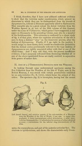Keywords: The Quarterly journal of the Geological Society of London (13936884561).jpg 46 MR E LYDEEKER OX THE EEMAIXS AXD AEEIXITIES <br> the extreme stoutness of the shaft and the total absence of a dis- <br> tinct distal intercondylar groove on the anterior aspect The <br> name Cryptosaurus is however preoccupied by Geoffroy and this <br> form assuming it to be distinct from other types accordingly <br> requires a new generic name for which I would propose Crypto- <br> draeo <br> During a visit to the collection of Reptilian remains from the <br> Oxford Clay near Peterborough in the collection of Mr A N Leeds <br> of Eyebury I was shown the left femur of an Iguanodont Dinosaur <br> which I thought might perhaps prove identical with Cryptodraco <br> This specimen the owner has kindly permitted me to bring to the <br> notice of the Society The middle portion of the shaft has been <br> considerably crushed and broken but both extremities are entire <br> The shaft agrees with that of the femur of Hysilophodon and of the <br> North- American Camptosaurus Camptonotus and differs from that <br> of Iguanodon in its markedly forward arcuation The inner tro- <br> chanter has lost its free extremity but the basal portion shows that <br> it is of the pendant type characteristic of the two former genera <br> and not of the crested type found in Iguanodon The anterior <br> intercondylar groove is slightly less developed in this specimen than <br> in either of the Wealden genera but it is still present Compared <br> with the type of Cryptodraco this bone differs very widely so that <br> there can be no doubt as to both its specific and generic dis- <br> tinctness Thus it is much more slender ; its shaft more curved ; <br> the head smaller instead of larger than the great trochanter; <br> the lesser trochanter thinner and taller ; and the distal end less <br> flattened and with a distinct intercondylar groove The inner <br> trochanter is wanting in the larger bone <br> Leaving then the femur of Cryptodraco on one side as indicating <br> a totally distinct form we may look around for other described <br> Iguanodonts with which to compare our specimen <br> The close relationship existing between the Reptiles of the Oxford <br> and Kimeridge Clays those of the former being frequently some- <br> what smaller than their allies of the latter suggests that the present <br> form may be closely allied to Iguanodon Prestwichii of the Kimer- <br> idgian which was described some years ago by Mr Hulke in <br> our ' Journal ' and which Professor Seeley last year proposed to <br> separate generically under the name of Cumnoria The entire femur <br> of that form is unfortunately unknown but it could evidently have <br> been only slightly larger than the present specimen with which <br> as I have satisfied myself by personal examination the terminal <br> extremities agree very closely Evidence of affinity between that <br> species and Camptosaurus is shown by the angulated and flattened <br> haemal surface of the sacral vertebra and by the absence of anchy- <br> losis between these centra Having therefore two Iguanodonts <br> from contiguous deposits both of which show marked signs of <br> affinity with Camptosaurus the presumption becomes very strong <br> indeed that they are closely allied There is indeed no decisive <br> Attention is directed to these two types by M L Dollo in an interesting <br> article published in the ; Bull Sci France et Belgique ' 1868 pp 215-224 36939787 113696 51125 Page 44 Text 45 http //www biodiversitylibrary org/page/36939787 1889 Geological Society of London NameFound Camptonotus NameConfirmed Camptonotus EOLID 36172 NameBankID 4102246 NameFound Camptosaurus NameConfirmed Camptosaurus EOLID 4530721 NameBankID 4102296 NameFound Cryptodraco NameConfirmed Cryptodraco NameBankID 4129556 NameFound Cryptosaurus NameConfirmed Cryptosaurus EOLID 4533787 NameBankID 4130110 NameFound Cumnoria NameConfirmed Cumnoria NameBankID 4131081 NameFound Iguanodon NameConfirmed Iguanodon EOLID 4530741 NameBankID 4204832 Biodiversity Heritage Library The Quarterly journal of the Geological Society of London v 45 1889 Geology Periodicals Smithsonian Libraries bhl page 36939787 dc identifier http //biodiversitylibrary org/page/36939787 smithsonian libraries Information field Flickr posted date ISOdate 2014-04-21 Check categories 2015 August 26 CC-BY-2 0 BioDivLibrary https //flickr com/photos/61021753 N02/13936884561 2015-08-26 06 56 02 cc-by-2 0 PD-old-70-1923 The Quarterly journal of the Geological Society of London 1889 Photos uploaded from Flickr by Fæ using a script |