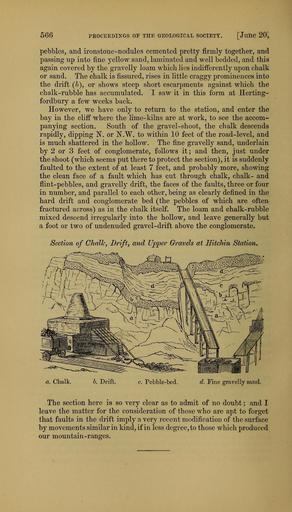 | Keywords: The Quarterly journal of the Geological Society of London (13958825083).jpg 566 <br> PROCEEDINGS OF THE GEOLOGICAL SOCIETY JllllC 20 <br> pebbles and ironstone-nodules cemented pretty firmly together and <br> passing np into fine yellow sand laminated and well bedded and this <br> again covered by the gravelly loam which lies indifferently npon chalk <br> or sand The chalk is fissured rises in little craggy prominences into <br> the drift 6 or shows steep short escarpments against which the <br> chalk-rubble has accumulated I saw it in this form at Herting- <br> fordbury a few weeks back <br> However we have only to return to the station and enter the <br> bay in the cliff where the lime-kilns are at work to see the accom- <br> panying section South of the gravel-shoot the chalk descends <br> rapidly dipping N or N W to within 10 feet of the road-level and <br> is much shattered in the hollow The fine gravelly sand underlain <br> by 2 or 3 feet of conglomerate follows it; and then just under <br> the shoot which seems put there to protect the section it is suddenly <br> faulted to the extent of at least 7 feet and probably more showing <br> the clean face of a fault which has cut through chalk chalk- and <br> flint-pebbles and gravelly drift the faces of the faults three or four <br> in number and parallel to each other being as clearly defined in the <br> hard drift and conglomerate bed the pebbles of which are often <br> fractured across as in the chalk itself The loam and chalk-rubble <br> mixed descend irregularly into the hollow and leave generally but <br> a foot or two of undenuded gravel- drift above the conglomerate <br> Section of ChaVc Drift and Upper Gravels at Hitcinn Station <br> a Chalk <br> b Drift <br> c Pebble-bed <br> d Fine gravelly sand <br> The section here is so very clear as to admit of no doubt ; and I <br> leave the matter for the consideration of those who are apt to forget <br> that faults in the drift imply a very recent modification of the surface <br> by movements similar in kind if in less degree to those which produced 36165019 111477 51125 Page 566 Text v 22 http //www biodiversitylibrary org/page/36165019 1866 Geological Society of London Biodiversity Heritage Library The Quarterly journal of the Geological Society of London v 22 1866 Geology Periodicals Smithsonian Libraries bhl page 36165019 dc identifier http //biodiversitylibrary org/page/36165019 smithsonian libraries Information field Flickr posted date ISOdate 2014-04-21 Check categories 2015 August 26 CC-BY-2 0 BioDivLibrary https //flickr com/photos/61021753 N02/13958825083 2015-08-26 06 54 58 cc-by-2 0 PD-old-70-1923 The Quarterly journal of the Geological Society of London 1866 Photos uploaded from Flickr by Fæ using a script |