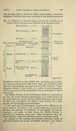 | Keywords: The Quarterly journal of the Geological Society of London (13369031893).jpg 1873 <br> SHARP OOLITES OF NORTHAMPTONSHIRE <br> 227 <br> this are three beds of the Great Oolite series having a maximum <br> thickness of 45 feet the lowest consisting of clay having a persistent <br> Fig 1 Diagram of General Section slioiving the 'position of the <br> Inferior Oolite Limestone and Divisions of Northampton Sand <br> Blisworth Clay 2 ft <br> White Limestone 25 ft <br> Blue Clay 15 ft <br> Ferruginous band <br> Place of Great Limestone of the Inferior Oolite <br> 'Upper WhiteSand 12 ft <br> I Plant-bed <br> Great Oolite <br> f Line of un- <br> \ t_ conformity <br> c <br> Middle J Variable beds 30 ft <br> Limestone <br> /Slate <br> 1 <br> Lower <br> Beds containing 1 <br> Ironstone J <br> 4 ft <br> Amm- bifrons bed <br> Pebbly bed <br> Upper Lias <br> ferruginous band at its base which clay containing wood plants <br> and numerous bands with fresh-water shells and exhibiting other <br> estuarine characteristics has been termed by Mr Judd the Upper <br> Estuarine Series ; the middle of a series of marly limestones ; <br> and the uppermost of clay characterized by an abundance of Ostrea <br> subrugulosa <br> The Middle Division of the Northampton Sand was separated by <br> me from the Lower Division provisionally as I stated because of <br> the intervention of a band of coarse Oolitic Limestone and because <br> of differences throughout the district then treated of in their <br> mineral and stratigraphical characteristics <br> To the north-east of Northampton however those differences are <br> not so marked for instance over a considerable area in the Lower <br> Division for ironstone is substituted an only slightly ferruginous <br> limestone ; and again in other places the Middle Division is <br> quarried for ironstone being more richly ferruginous than the <br> Lower Division while the Limestone band is frequently absent <br> In contrast to the varying and therefore uncertain marks of <br> distinction between the Lower and Middle Divisions of the North- <br> q2 39051145 120601 51125 Page 227 Text v 29 http //www biodiversitylibrary org/page/39051145 1873 Geological Society of London NameFound Ostrea subrugulosa NameConfirmed Ostrea submgulosa Biodiversity Heritage Library The Quarterly journal of the Geological Society of London v 29 1873 Geology Periodicals Smithsonian Libraries bhl page 39051145 dc identifier http //biodiversitylibrary org/page/39051145 smithsonian libraries Information field Flickr posted date ISOdate 2014-03-24 Check categories 2015 August 26 CC-BY-2 0 BioDivLibrary https //flickr com/photos/61021753 N02/13369031893 2015-08-26 10 57 18 cc-by-2 0 PD-old-70-1923 The Quarterly journal of the Geological Society of London 1873 Photos uploaded from Flickr by FĂŚ using a script |