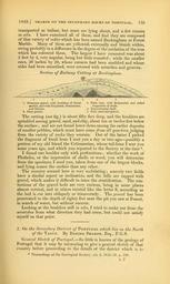 | Keywords: The Quarterly journal of the Geological Society of London (13365168413).jpg 1849 SHARPE ON THE SECONDARY ROCKS OF PORTUGAL 135 <br> transported as ballast but some are lying about and a few remain <br> in situ I have examined all of them and find they are composed <br> of that variety of oohte which has been named Buckingham or Forest <br> Marble Many of them are yellowish externally and bluish within <br> owing probably to a difference in the degree of the oxidation of the iron <br> which has coloured them The largest I have measured was about <br> 3 feet by 4 very angular being but little rounded ; while the smaller <br> ones 30 inches by 20 whose corners had been modified and whose <br> sides had been smoothed were covered with scratches and grooves <br> Section of Railway Cutting at Buckingham <br> 12 3 4 5 <br> 1 Oclireous gravel with boulders of forest 3 Dark claj' with Belemnites and rolled <br> marble and with Grypheese Belemnites fragments of chalk <br> and Ostreee 4 Experimental shaft <br> 2 Grey gravel 5 Grey sand and gravel <br> The cutting see fig is about fifty feet deep and the boulders are <br> sprinkled among gravel sand and clay about ten or twelve feet below <br> the surface ; and are not found lower down among the earlier deposits <br> of smaller pebbles which must have come from all quarters judging <br> from the variety of rocks they contain Out of the latter I picked <br> the fragment of fossil bone I sent you a day or two ago ” possibly a <br> portion of my old friend the Cetiosaurian whose tail-bone I sent you <br> some years ago and which you reported to the Society at the time' ' <br> I found one boulder only with perforations ; whether the work of <br> Pholades or the impression of shells or wood you will determine <br> from the specimen I send you taken from one of the largest blocks <br> and lying nearer the surface than any other <br> The country around here is very undulating ; scarcely two fields <br> have a similar aspect or inclination and the hills are capped with <br> gravel which makes it difficult to trace the stratification The con- <br> tortions of the gravel beds are very curious being in some places <br> almost vertical and in others twisted like the letter S according as <br> the bed is cut into obliquely or transversely The gravel has been <br> penetrated to the depth of eighty feet near the pit you saw at Foscot <br> in search of water but without success <br> Looking at the boulders still in situ I tried to make out from the <br> scratches from what direction they had come but could not satisfy <br> myself on that point <br> 2 On the Secondary District 0/ Portugal which lies on the North <br> of the Tagus By Daniel Sharpe Esq F G S <br> General Sketch of Portugal ” So little is known of the geology of <br> Portugal that it may be interesting to give a general sketch of that <br> country before proceeding to the details of the district which is to <br> Proceedings of the Geological Society vol ii 1833-38 p 190 <br> L 2 36933960 113689 51125 Page 135 Text v 6 http //www biodiversitylibrary org/page/36933960 1850 Geological Society of London NameFound Belemnites NameConfirmed Belemnites EOLID 4780330 NameBankID 4089090 Biodiversity Heritage Library The Quarterly journal of the Geological Society of London v 6 1850 Geology Periodicals Smithsonian Libraries bhl page 36933960 dc identifier http //biodiversitylibrary org/page/36933960 smithsonian libraries Information field Flickr posted date ISOdate 2014-03-23 Check categories 2015 August 26 CC-BY-2 0 BioDivLibrary https //flickr com/photos/61021753 N02/13365168413 2015-08-26 11 50 34 cc-by-2 0 PD-old-70-1923 The Quarterly journal of the Geological Society of London 1850 Photos uploaded from Flickr by Fæ using a script |