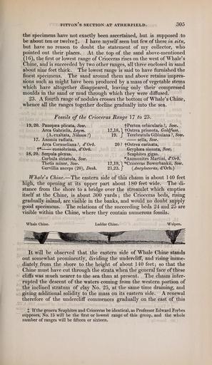 | Keywords: The Quarterly journal of the Geological Society of London (13206235164).jpg fitton's section at atherfield 305 <br> the specimens have not exactly been ascertained but is supposed to <br> be about ten or twelve I have myself seen but few of these in situ <br> but have no reason to doubt the statement of my collector who <br> pointed out their places At the top of the sand above-mentioned <br> 16 the first or lowest range of Crioceras rises on the west of Whale's <br> Chine and is succeeded by two other ranges all three enclosed in sand <br> about nine feet thick The lowest range is said to have furnished the <br> finest specimens The sand around them and above retains impres- <br> sions such as might have been produced by amass of vegetable stems <br> which have altogether disappeared leaving only their compressed <br> moulds in the sand or mud through which they were diffused <br> 23 A fourth range of nodules crosses the bottom of Whale's Chine <br> whence all the ranges together dechne gradually into the sea <br> Fossils of the Crioceras Range 17 to 23 <br> 19 20 Panopaea plicata -Sow fPecten orbicularis Sow <br> Area Gabrielis Zeyw 17 18 fOstrea prionota Goldfuss <br> A exaltata iVi «o» 19 J Terebratula Gibbsiana -Som <br> 17 Anomia radiata sella S'ow; <br> Area Cornueliana d Orb 20 fOstrea earinata -5 <br> lo ctgi - - consobrinus d'Orb id issl S£ ih- Gryphsea sinuata SoWi <br> t' 18 20 Serpula plexus Scaphites gigas <br> - Corbula striatula aSow Ammonites Martini tZ'OrS <br> TLetis minor Sow 17 19 I Crioceras Bowerbankii Sow <br> Gervillia anceps 20 Desh 21 23 J Ancyloceras d'Orb <br> Whale's Chine ” The eastern side of this chasm is about 140 feet <br> high the opening at its upper part about 180 feet wide The di- <br> stance from the shore to a bridge over the streamlet which empties <br> itself at the Chine is about 300 yards ; the Crioceras beds rising <br> gradually inland are visible in the banks and would no doubt supply <br> good specimens The relations of the succeeding beds 24 and 25 are <br> visible within the Chine where they contain numerous fossils <br> Whale Chine Ladder Chine Walpen <br> It will be observed that the eastern side of Whale Chine stands <br> out somewhat prominently dividing the undercliff and rising imme- <br> diately from the shore to the height of about 140 feet; so that the <br> Chine must have cut through the strata when the general face of these <br> chffs was much nearer to the sea than at present The chasm inter- <br> rupted the descent of the waters coming from the western portion of <br> the inclined stratum of clay No 25 at the same time draining and <br> giving additional solidity to the mass on its eastern side A renewal <br> therefore of the undercliff commences gradually on the east of this <br> X If the genera Scaphites and Crioceras be identical as Professor Edward Forbes <br> supposes No 15 will be the first or lowest range of this group and the whole <br> number of ranges will be fifteen or sixteen 36933056 113687 51125 Page 305 Text v 3 http //www biodiversitylibrary org/page/36933056 1847 Geological Society of London NameFound A exaltata NameFound Ancyloceras NameConfirmed Ancyloceras EOLID 4784141 NameBankID 4069340 NameFound Anomia radiata NameConfirmed Anomia radiata Brocchi 1814 NameFound Corbula striatula NameConfirmed Corbula striata NameBankID 6251776 NameFound Crioceras NameConfirmed Crioceras EOLID 4784226 NameBankID 1782840 NameFound Gervillia anceps NameConfirmed Gervillia anceps NameFound Gryphsea sinuata NameFound Panopaea plicata NameConfirmed Panopaea plicata NameFound Scaphites NameConfirmed Scaphites Parkinson 1811 EOLID 4785375 NameFound Scaphites gigas NameFound Serpula plexus NameFound Terebratula NameConfirmed Terebratula EOLID 13755808 NameBankID 4365172 Biodiversity Heritage Library The Quarterly journal of the Geological Society of London v 3 1847 Geology Periodicals Smithsonian Libraries bhl page 36933056 dc identifier http //biodiversitylibrary org/page/36933056 smithsonian libraries Information field Flickr posted date ISOdate 2014-03-17 Check categories 2015 August 26 CC-BY-2 0 BioDivLibrary https //flickr com/photos/61021753 N02/13206235164 2015-08-26 12 54 27 cc-by-2 0 PD-old-70-1923 The Quarterly journal of the Geological Society of London 1847 Photos uploaded from Flickr by Fæ using a script |