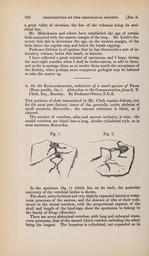 | Keywords: The Quarterly journal of the Geological Society of London (13205800975).jpg 224 PROCEEDINGS OF THE GEOLOGICAL SOCIETY Jan 6 <br> a great valley of elevation the line of the volcanos being its anti- <br> clinal line <br> Mr Malcolmson and others have established the age of certain <br> beds connected with the eastern margin of the trap Dr Leith's dis- <br> covery bids fair to determine the age on the western margin of the <br> beds above the regular trap and below the basalt capping <br> Professor Orlebar is of opinion that he has discovered a sort of in- <br> tercalary volcano below this basalt in Salsette <br> I have collected a great number of specimens and I hope during <br> the next eight months when I shall be under canvas to add to them <br> and so far to arrange them as to render them worth the acceptance of <br> the Society when perhaps some competent geologist may be induced <br> to take the matter up <br> 4 On the Batracholites indicative of a small species of Frog <br> Rana pusilla Ow Addendum to the Communication from G T <br> Clark Esq Bombay By Professor Ow en F G S <br> The portions of shale transmitted by Mr Clark contain delicate but <br> for the most part distinct traces of the generally entire skeleton of <br> small anourous Batrachia ; the osseous substance is black as if <br> charred <br> The number of vertebrae atlas and sacrum inclusive is nine the <br> caudal vertebrae are fused into a long slender cylindrical style as in <br> most anourous Batrachia <br> Fig 1 Fig 2 <br> In the specimen fig 1 which lies on its back the posterior <br> convexity of the vertebral bodies is shown <br> The short subcylindrical and very slightly expanded lateral or trans- <br> verse processes of the sacrum and the absence of ribs or their rudi- <br> ments in the dorsal vertebrae with the proportional expanse of the <br> skull and length of the hind-legs show the specimens to belong to <br> the family of Frogs Ranidce <br> There are seven abdominal vertebrae with long and subequal trans- <br> verse processes that of the second third vertebra including the atlas <br> being the longest The humerus is cylindrical not expanded as in 36932961 113687 51125 Page 224 Text v 3 http //www biodiversitylibrary org/page/36932961 1847 Geological Society of London NameFound Batrachia NameConfirmed Batrachia EOLID 12111331 NameBankID 5952690 NameFound Rana pusilla NameConfirmed Rana pusilla NameBankID 6723109 Biodiversity Heritage Library The Quarterly journal of the Geological Society of London v 3 1847 Geology Periodicals Smithsonian Libraries bhl page 36932961 dc identifier http //biodiversitylibrary org/page/36932961 smithsonian libraries Information field Flickr posted date ISOdate 2014-03-17 Check categories 2015 August 26 CC-BY-2 0 BioDivLibrary https //flickr com/photos/61021753 N02/13205800975 2015-08-26 12 56 40 cc-by-2 0 PD-old-70-1923 The Quarterly journal of the Geological Society of London 1847 Photos uploaded from Flickr by Fæ using a script |