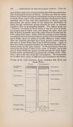 | Keywords: The Quarterly journal of the Geological Society of London (13205884793).jpg 156 <br> PROCEEDINGS OF THE GEOLOGICAL SOCIETY DeC 16 <br> ment of these rocks more nearly resembles that of Westmoreland than <br> that of the typical country of Siluria I believe also that the distri- <br> bution of the fossils through the subordinate divisions of these rocks <br> in South Wales agrees more exactly with their distribution in West- <br> moreland than it does with their distribution in Siluria ” proving <br> that within the narrow limits of our island the distribution of <br> fossils through subordinate groups depends far more on physical <br> conditions than on geographical latitude The highest group or <br> Tilestone contains in South Wales a very fine series of fossils <br> the greatest part of which occur also among the grits slates and <br> flags of Kirkby Lonsdale and in the ridges between Kendal and the <br> lower valley of the Lune 2ndly With many points of most intimate <br> resemblance between the Upper Silurian groups of Westmoreland and <br> South Wales there are points of specific diflference worth notice <br> Thus the Cardiola interrupta has a much greater vertical range in <br> this part of South Wales than it has in Westmoreland Again in <br> these two widely-separated localities the Terehratula Navicula com- <br> mences nearly on the same horizon In Westmoreland it does not <br> ascend into the Upper Ludlow series south of Kendal ; but in this <br> part of South Wales the species ascends through the whole Upper <br> Ludlow series and abounds even among the red flags of the Tile- <br> stone close to the base of the Old red sandstone My limits forbid <br> me to follow these points of diiFerence and resemblance any farther <br> Groups of the whole Cambrian Series including both North and <br> South Wales <br> Westmoreland <br> Carboniferous <br> Old Red <br> Upper Silurian <br> Lower Silurian J <br> Upper Cambrian <br> Slates <br> Snowdonian Group <br> Tremadoc Group <br> Crystalline Slates <br> Carboniferous <br> Upper Silurian <br> Coniston Limestone <br> Lower Silurian <br> Cumbrian Slates <br> Skiddaw Slate 36932885 113687 51125 Page 156 Text v 3 http //www biodiversitylibrary org/page/36932885 1847 Geological Society of London NameFound Cardiola interrupta NameConfirmed Cardiola interrupta NameBankID 7004591 NameFound Navicula NameConfirmed Navicula EOLID 11750 NameBankID 3868892 Biodiversity Heritage Library The Quarterly journal of the Geological Society of London v 3 1847 Geology Periodicals Smithsonian Libraries bhl page 36932885 dc identifier http //biodiversitylibrary org/page/36932885 smithsonian libraries Information field Flickr posted date ISOdate 2014-03-17 Check categories 2015 August 26 CC-BY-2 0 BioDivLibrary https //flickr com/photos/61021753 N02/13205884793 2015-08-26 12 53 47 cc-by-2 0 PD-old-70-1923 The Quarterly journal of the Geological Society of London 1847 Photos uploaded from Flickr by Fæ using a script |