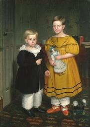 | Keywords: The Raymond Children, ca. 1838 by Robert Peckham.jpg The Raymond Children Oil on canvas; 55 1/4 x 39 in 140 3 x 99 cm Metropolitan Museum of Art accession 66 242 27 http //www metmuseum org/toah/hd/afkp/ho_66 242 27 htm ca 1838 Robert Peckham American 1785 “1877 PD-old Robert Peckham American paintings in the Metropolitan Museum of Art Peckham 1838 paintings Children in art | ||||