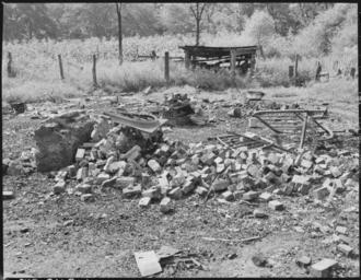| Keywords: The remains of a house which burned down in twenty minutes recently - NARA - 541148.jpg Scope and content The remains of a house which burned down in twenty minutes recently There is no protection from fire in this camp; the nearest fire fighting equipment is in Pineville about seven miles away; water for fire fighting is pumped from the meager stream; the only telephone in the camp is in the store which is locked and no key is kept in the camp at night Houses usually burn to the ground within twenty minutes after the fire gets going Fox Ridge Mining Company Inc Hanby Mine Arjay Bell County Kentucky General notes 541148 Local identifier 245-MS-2162L Department of the Interior Solid Fuels Administration For War 04/19/1943 - 06/30/1947 NARA-Author Lee Russell 1903-1986 Photographer 2489414 <br /> Still Picture Records Section Special Media Archives Services Division NWCS-S National Archives at College Park 8601 Adelphi Road College Park MD 20740-6001 1946 08 31 Record group Record Group 245 Records of the Solid Fuels Administration for War 1937 - 1948 Record group ARC 572 Photographs of the Medical Survey of the Bituminous Coal Industry compiled 1946 - 1947 Series ARC 540230 File unit File unit ARC Variant control numbers NAIL Control Number NWDNS-245-MS-2162L Other versions <gallery> File The_remains_of_a_house_which_burned_down_in_twenty_minutes_recently_-_NARA_-_541148 tif tif File The_remains_of_a_house_which_burned_down_in_twenty_minutes_recently_-_NARA_-_541148 jpg jpg </gallery> NARA-cooperation PD-USGov Coal mining in the United States |