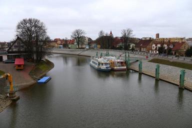 Keywords: the river odra in nowa sól boats ships water tree the coast port