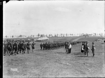 | Keywords: the great war thegreatwar great war greatwar world war one worldwarone world war i worldwari wwi first world war firstworldwar new zealand expeditionary force newzealandexpeditionaryforce nzef soldier soldiers blackandwhite monochrome outdoor photo border black and white A general view of the Corps Commander taking the salute after a New Zealand Brigade church service at Sapignies, France, during World War I. The Divisional Commanderl, General Russell, and the chaplain stand on his left. Other officers are behind them. Soldiers file past down a slight slope towards camp. Photograph taken 8 September 1918 by Henry Armytage Sanders. Inscriptions: Inscribed - Photographer's title on negative -bottom left: H1032. Quantity: 1 b&w original negative(s). Physical Description: Dry plate glass negative 4 x 5 inches The salute after a New Zealand Brigade church service in France, World War I. Royal New Zealand Returned and Services' Association :New Zealand official negatives, World War 1914-1918. Ref: 1/2-013597-G. Alexander Turnbull Library, Wellington, New Zealand. natlib.govt.nz/records/22797320 A general view of the Corps Commander taking the salute after a New Zealand Brigade church service at Sapignies, France, during World War I. The Divisional Commanderl, General Russell, and the chaplain stand on his left. Other officers are behind them. Soldiers file past down a slight slope towards camp. Photograph taken 8 September 1918 by Henry Armytage Sanders. Inscriptions: Inscribed - Photographer's title on negative -bottom left: H1032. Quantity: 1 b&w original negative(s). Physical Description: Dry plate glass negative 4 x 5 inches The salute after a New Zealand Brigade church service in France, World War I. Royal New Zealand Returned and Services' Association :New Zealand official negatives, World War 1914-1918. Ref: 1/2-013597-G. Alexander Turnbull Library, Wellington, New Zealand. natlib.govt.nz/records/22797320 |