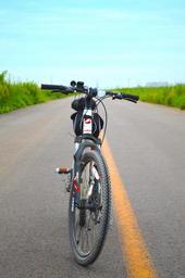 Keywords: the scenery bike mountain bike riding highway blue sky and white clouds the village road