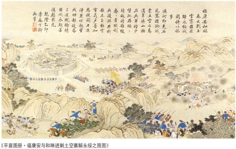 Keywords: The Siege of Yongsui City.jpg en A scene of the Chinese Campaign against the Miao Hunan 1795 zh-hans å¹³å®šè‹—ç–†æˆ˜å½¹ä¹‹ä¸ ” ”å¤§å‰¿å Ÿç©ºå¯¨è‹—åŒªè§£æ°¸ç»¥åŸŽå›´ http //www battle-of-qurman com cn/e/hist htm late XVIII century A collaboration between Chinese and European painters The Jesuit missionaries involved in producing the drawings in China were Giuseppe Castiglione Jean-Denis Attiret Ignace Sichelbart and Jean Damascene The engravings were executed in Paris under the direction of Charles-Nicolas Cochin of the Académie Royal at the Court of Louis XVI and the individual engravers include Le Bas Aliamet Prevot Saint-Aubin Masquelier Choffard and Launay PD-Art Military of Qing China Ten Great Campaigns Paintings of the Qing Dynasty |