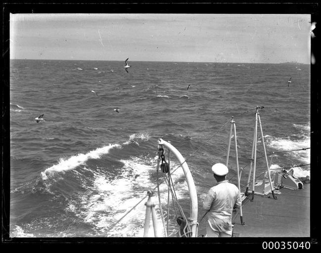 | Keywords: hood collection hoodcollection 35040 samuel j hood collection samueljhoodcollection hmas torrens hmastorrens torrens royal australian navy royalaustraliannavy navy naval vessel navalvessel sinking scuttled scuttling 1930 destroyer sydney sydney heads sydneyheads hmas anzac hmasanzac sailor officer naval officers navalofficers naval personnel navalpersonnel hmas canberra hmascanberra blackandwhite photo border monochrome outdoor black and white Having served in the Royal Australian Navy from 1916, latterly as a training platform for the Naval Reserve, HMAS TORRENS I was decommissioned and prepared as a target for Fleet Gunnery Practice. On 24 November 1930 Samuel J Hood, who was probably on board HMAS ANZAC, photographed the sinking of TORRENS off Sydney Heads. This photograph depicts a naval officer or sailor, probably on board ANZAC. In the distance to the right is probably HMAS CANBERRA. This photo is part of the Australian National Maritime Museum’s Samuel J. Hood Studio collection. Sam Hood (1872-1953) was a Sydney photographer with a passion for ships. His 60-year career spanned the romantic age of sail and two world wars. The photos in the collection were taken mainly in Sydney and Newcastle during the first half of the 20th century. The ANMM undertakes research and accepts public comments that enhance the information we hold about images in our collection. This record has been updated accordingly. Photographer: Samuel J. Hood Studio Collection Object no. 00035040 Having served in the Royal Australian Navy from 1916, latterly as a training platform for the Naval Reserve, HMAS TORRENS I was decommissioned and prepared as a target for Fleet Gunnery Practice. On 24 November 1930 Samuel J Hood, who was probably on board HMAS ANZAC, photographed the sinking of TORRENS off Sydney Heads. This photograph depicts a naval officer or sailor, probably on board ANZAC. In the distance to the right is probably HMAS CANBERRA. This photo is part of the Australian National Maritime Museum’s Samuel J. Hood Studio collection. Sam Hood (1872-1953) was a Sydney photographer with a passion for ships. His 60-year career spanned the romantic age of sail and two world wars. The photos in the collection were taken mainly in Sydney and Newcastle during the first half of the 20th century. The ANMM undertakes research and accepts public comments that enhance the information we hold about images in our collection. This record has been updated accordingly. Photographer: Samuel J. Hood Studio Collection Object no. 00035040 |