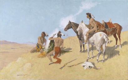 | Keywords: The Smoke Signal, 1905, by Frederic S. Remington.jpg en Frederic S Remington 1861-1909 ; The Smoke Signal; 1905; Oil on canvas; Amon Carter Museum of American Art Fort Worth Texas Amon G Carter Collection; 1961 250 2008-08-22 09 53 00 Photograph of original painting Frederic S Remington other versions PD-Art 1905 paintings Frederic Remington |