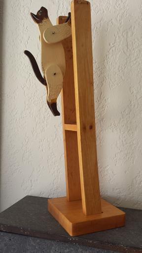 | Keywords: cat toy craft wood knick knack knickknack I bought this in the early 1990's when I was in my 20's. This was in a gift shop on 5th Street in Reading, PA near where I had an apartment. I took it with me when I moved to Phoenix in '96. I took it to San Diego when I moved in with my partner, Marc. It came with us back to Pittsburgh in 2001 and Philadelphia in 2004. I broke up with Marc in 2007 and it went with him to his place in New Jersey. After not talking to Marc in 5 years, I reconnected with him...this time as friends. I was glad he never threw it out. I helped Marc move back to San Diego in 2012. He helped me relocate back here later that year. I helped my sister move from Philadelphia. She lives with me in an apartment three doors down from him. Marc starting a long process of killing himself by doing Meth a year ago. Between that and his non-stop smoking, this thing looked awful, caked in dirt, filth and neglect. I've watched Marc's life fall apart. He now is getting thrown out of his apartment. My sister is helping him move. I can't do that...I don't like looking at the skeleton he's become...one that's completely lost touch with reality. In the move, she found this somewhere in the piles of trash and boxes and people doing drug deals near her. She knew I wanted it back; I was so happy she found it. She brought it home where I spent a long couple hours of cleaning it. I've got it back. It means a lot. I bought this in the early 1990's when I was in my 20's. This was in a gift shop on 5th Street in Reading, PA near where I had an apartment. I took it with me when I moved to Phoenix in '96. I took it to San Diego when I moved in with my partner, Marc. It came with us back to Pittsburgh in 2001 and Philadelphia in 2004. I broke up with Marc in 2007 and it went with him to his place in New Jersey. After not talking to Marc in 5 years, I reconnected with him...this time as friends. I was glad he never threw it out. I helped Marc move back to San Diego in 2012. He helped me relocate back here later that year. I helped my sister move from Philadelphia. She lives with me in an apartment three doors down from him. Marc starting a long process of killing himself by doing Meth a year ago. Between that and his non-stop smoking, this thing looked awful, caked in dirt, filth and neglect. I've watched Marc's life fall apart. He now is getting thrown out of his apartment. My sister is helping him move. I can't do that...I don't like looking at the skeleton he's become...one that's completely lost touch with reality. In the move, she found this somewhere in the piles of trash and boxes and people doing drug deals near her. She knew I wanted it back; I was so happy she found it. She brought it home where I spent a long couple hours of cleaning it. I've got it back. It means a lot. |