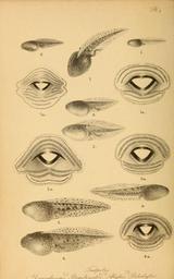 | Keywords: The tailless batrachians of Europe (Page 100) (6216965033).jpg 102 <br> INTEODUCTION <br> denticulate anterior fold leads into the branchial <br> chambers r which contain the four branchial arches <br> Fig 44 <br> Transverse section through the head of larval Pelohates fuscus <br> After Schulze a Upper part B Lower part hr Bran- <br> chial chambers ch Choanse I Lip m Mouth ph Pharynx <br> t Tongue <br> These arches bear on the convex outer side the delicate <br> arborescent gills and on the concave inner side de- <br> velop a membranous septum with vermicular perfora- <br> tions a special sifting or filtering contrivance through <br> which the water absorbed by the mouth has to pass <br> before reaching the respiratory organs of the branchial <br> apparatus <br> Spiraculum ” The water is expelled from the bran- <br> chial chambers by one or two tubes opening by one <br> orifice in all European Batrachians This orifice is <br> the spiraculum In the Discoglossidse two tubes are <br> present which gradually converge towards each other <br> at the end of the first period of development as sliown <br> on Fig 41 p 98 and in the tadpole proper discharge <br> through one transverse slit-like or crescentic opening <br> situated in the middle of the breast Fig 45 a sp <br> In all other tailless Batrachians the tube is single and 36107775 111303 52023 Page 100 Text 1 http //www biodiversitylibrary org/page/36107775 1897 10 5962/bhl title 52023 Boulenger George Albert NameFound Spiraculum NameConfirmed Spiraculum NameBankID 4349265 Biodiversity Heritage Library The tailless batrachians of Europe v 1 Amphibians Europe Frogs SIL Smithsonian Institution Libraries bhl page 36107775 dc identifier http //biodiversitylibrary org/page/36107775 Taxonomy Order Anura sil smithsonian institution libraries taxonomy order anura Information field Flickr posted date ISOdate 2011-10-06 CC-BY-2 0 BioDivLibrary https //flickr com/photos/61021753 N02/6216965033 2015-09-01 06 24 26 cc-by-2 0 PD-old-70-1923 Anura anatomy The tailless batrachians of Europe Photos uploaded from Flickr by Fæ using a script |