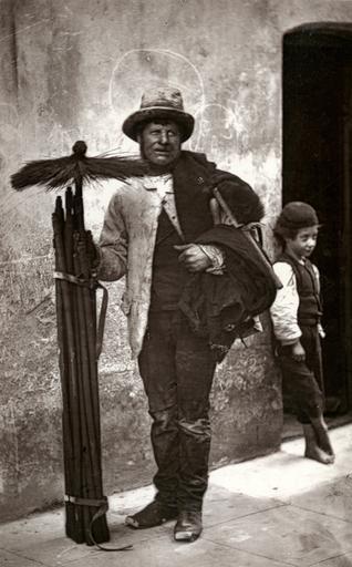 | Keywords: street_life_in_london streetlifeinlondon chimney sweep chimneysweep john day johnday monochrome From 'Street Life in London', 1877, by John Thomson and Adolphe Smith. This chapter recounts the life story of John Day, which begins: 'Born in Lambeth, the son of a road-mender, John Day was sent out to work when scarcely more than ten years old. His father was decidedly addicted to drink, and was in the habit of taking his son on Sunday to public-houses, where drink was sold in defiance of the Licensing Act. So long as the child had a few halfpence for beer, he was in the parental eyes a good boy; but when his meagre earnings had been thus uselessly spent, his father came to the conclusion that he could not afford to keep him, and that it was high time the boy should fight his own way in the world. H e was therefore turned out of his home, and had to resort to the friendly, if cheerless shelter of railway arches; or at times he would sleep on a barge, and profited by the opportunity to wash his solitary shirt in the canal, and hang it up on the rigging of his temporary home, while he disported himself amidst the tarpaulin till it dried. At time when there was nothing to be done at the flour-mill, he obtained a little work as assistant to a neighbouring chimney-sweep; but in either employ he rarely made more than 3s.per week.' And ends: 'He is now the happy father of a large family, he lives in a house near Lambeth Walk, where he once humbly worked in the capacity of a mere assistant. As a master sweep he has an extensive connexion. The money he earns enables him to subscribe to several benefit societies, and he is entitled to receive from them 10s. a week in sickness, while his wife will have £46 given her at his death, or he will receive £18 should she die first. Altogether he is both prosperous and respected throughout the neighbourhood, where he ardently advocates the cause of total abstinence, and is well known as the temperance sweep.' For the full story, and other photographs and commentaries, follow this link and click through to the PDF file at the bottom of the description archives.lse.ac.uk/Record.aspx?src=CalmView.Catalog&i... From 'Street Life in London', 1877, by John Thomson and Adolphe Smith. This chapter recounts the life story of John Day, which begins: 'Born in Lambeth, the son of a road-mender, John Day was sent out to work when scarcely more than ten years old. His father was decidedly addicted to drink, and was in the habit of taking his son on Sunday to public-houses, where drink was sold in defiance of the Licensing Act. So long as the child had a few halfpence for beer, he was in the parental eyes a good boy; but when his meagre earnings had been thus uselessly spent, his father came to the conclusion that he could not afford to keep him, and that it was high time the boy should fight his own way in the world. H e was therefore turned out of his home, and had to resort to the friendly, if cheerless shelter of railway arches; or at times he would sleep on a barge, and profited by the opportunity to wash his solitary shirt in the canal, and hang it up on the rigging of his temporary home, while he disported himself amidst the tarpaulin till it dried. At time when there was nothing to be done at the flour-mill, he obtained a little work as assistant to a neighbouring chimney-sweep; but in either employ he rarely made more than 3s.per week.' And ends: 'He is now the happy father of a large family, he lives in a house near Lambeth Walk, where he once humbly worked in the capacity of a mere assistant. As a master sweep he has an extensive connexion. The money he earns enables him to subscribe to several benefit societies, and he is entitled to receive from them 10s. a week in sickness, while his wife will have £46 given her at his death, or he will receive £18 should she die first. Altogether he is both prosperous and respected throughout the neighbourhood, where he ardently advocates the cause of total abstinence, and is well known as the temperance sweep.' For the full story, and other photographs and commentaries, follow this link and click through to the PDF file at the bottom of the description archives.lse.ac.uk/Record.aspx?src=CalmView.Catalog&i... |
