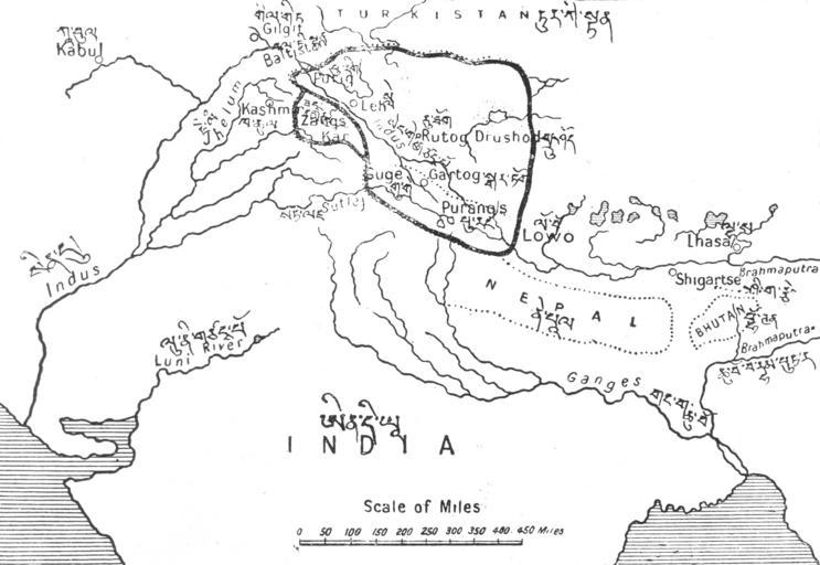 Keywords: The Territorial Extent of Ladakh during the period of King Nyimagon about 975 A. D.- 1000 A.D. as depicted in A History of Western Tibet by A.H. Francke, 1907.jpg en The Territorial Extent of Ladakh during the period of King Nyimagon about 975 A D - 1000 A D as depicted in A History of Western Tibet by A H Francke 1907 depicting not just the Aksai Chin but also inter alia Rudokh and Guge and the area to the west of the ridges which separate the plateau of Tibet from the highlands of Kashmir wherein are the Aling Kangri and Mavang Kangri peaks to the south of the Pulu Pass at the point where the Kuen Lun Range in Kashmir which runs southeast to northwest and the Altyn Tagh range in Tibet running southwest to northeast converge forming a V shape and culminating near the vicinity of Mayum La as integral part of Ladakh 2006-01-01 A History of Western Tibet by A H Francke 1907 August Hermann Francke 1870-1930 PD-old-80-1923 Uploaded with UploadWizard Historical kingdoms in India History of Jammu and Kashmir Maps of the history of Jammu and Kashmir History of Ladakh |
