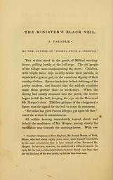 | Keywords: The Token, 1836 - Minister's Black Veil.jpg en Page from The Token and Atlantic Souvenir an annual gift-book edited by Samuel Griswold Goodrich Published by Charles Bowen 1836 Features the opening page of The Minister's Black Veil a short story by Nathaniel Hawthorne 1836 https //archive org/details/tokenatlanticsou00good Archive org Nathaniel Hawthorne other versions PD-old-70-1923 Writings of Hawthorne Samuel Griswold Goodrich The token and Atlantic souvenir - A Christmas and New Year's present 1836 |