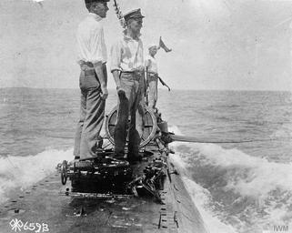 | Keywords: The US Navy in the First World War Q103675.jpg The US Navy in the First World War<br/> American sailors signalling from deck of a submarine American official photographer First World War http //media iwm org uk/iwm/mediaLib//349/media-349376/large jpg Q 103675 205139238 This image was created and released by the Imperial War Museum on the http //www iwm org uk/corporate/privacy-copyright/licence IWM Non Commercial Licence This photograph was taken by American military personnel in their official duties and is public domain under US law consequently the following licence applies in addition to any other claim PD-USGov-Mil American First World War Official Exchange Collection Associated people and organisations US Navy Associated themes US Navy 1917-1918 Associated keywords Submarine Warfare Naval Warfare photographs PD-USGov American First World War Official Exchange collection Images uploaded by Fæ |