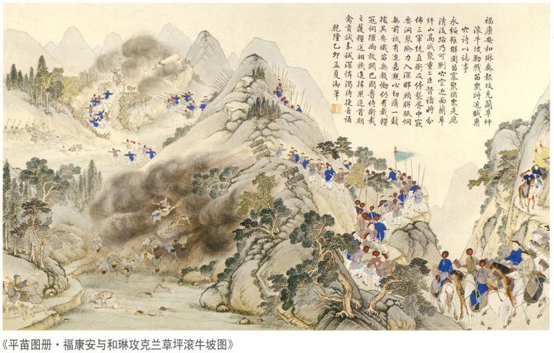 Keywords: The Victorious Battle at Lancaoping.jpg en A scene of the Chinese Qing dynasty Campaign against the Miao Hunan 1795 zh-hans 平定苗疆,攻克兰草 滚牛 http //www battle-of-qurman com cn/e/hist htm late XVIII century A collaboration between Chinese and European painters The Jesuit missionaries involved in producing the drawings in China were Giuseppe Castiglione Jean-Denis Attiret Ignace Sichelbart and Jean Damascene The engravings were executed in Paris under the direction of Charles-Nicolas Cochin of the Académie Royal at the Court of Louis XVI and the individual engravers include Le Bas Aliamet Prevot Saint-Aubin Masquelier Choffard and Launay PD-Art Military of Qing China Ten Great Campaigns Paintings of the Qing Dynasty |