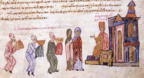 | Keywords: The widow Danielis visits emperor Leo VI.jpg Leo VI the Wise century 13 History of John Skylitzes http //bibliotecadigitalhispanica bne es 80/webclient/DeliveryManager pid 1754254 custom_att_2 simple_viewer Skyllitzes Matritensis Biblioteca Nacional de EspaƱa Unknown 13th-century author Custom license marker 2014 04 30 PD-old-100 Madrid Skylitzes Uploaded with UploadWizard Leon VI | ||||