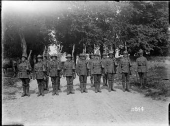 | Keywords: blackandwhite monochrome outdoor snow black and white A Wellington Regiment poses as winners of the guard mounting competition, part of the recreational activities organised by the New Zealand Infantry Brigade. Photograph taken Vaucelles 3 June 1918 by Henry Armytage Sanders. Inscriptions: Inscribed - Photographer's title on negative -bottom right: H644. Quantity: 1 b&w original negative(s). Physical Description: Dry plate glass negative 4.75 x 6.5 inches The winners of the guard mounting competition among New Zealand infantry troops during World War I. Royal New Zealand Returned and Services' Association :New Zealand official negatives, World War 1914-1918. Ref: 1/2-013250-G. Alexander Turnbull Library, Wellington, New Zealand. natlib.govt.nz/records/22430686 A Wellington Regiment poses as winners of the guard mounting competition, part of the recreational activities organised by the New Zealand Infantry Brigade. Photograph taken Vaucelles 3 June 1918 by Henry Armytage Sanders. Inscriptions: Inscribed - Photographer's title on negative -bottom right: H644. Quantity: 1 b&w original negative(s). Physical Description: Dry plate glass negative 4.75 x 6.5 inches The winners of the guard mounting competition among New Zealand infantry troops during World War I. Royal New Zealand Returned and Services' Association :New Zealand official negatives, World War 1914-1918. Ref: 1/2-013250-G. Alexander Turnbull Library, Wellington, New Zealand. natlib.govt.nz/records/22430686 |