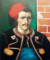 | Keywords: The Zouave (Half length) (JH 1486) - My Dream.jpg Artwork Q7776916 Creator Vincent van Gogh Gasse in Saintes-Maries The Zouave Half-figure Arles 1888 06 oil canvas ; digital reconstruction of the original colours cm 65 54 Institution Van Gogh Museum Amsterdam accession number object history credit line Van Gogh catalogues 423 1486 Photo by Szilas at the Van Gogh My Dream Exhibition in Budapest 2013 PD-old-100 The Zouave Half-figure by Vincent van Gogh Van Gogh My Dream Exhibition | ||||